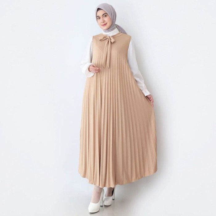 Long Dress Dress Plisket Tali Pita Leher Maxy Longdress Tanpa Lengan Mayung Jumbo - Black