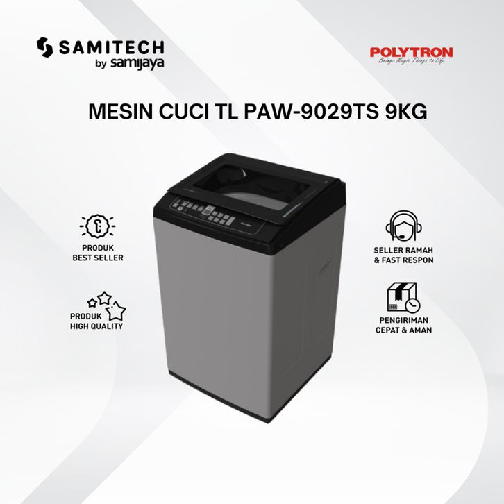 MESIN CUCI TOP LOADING POLYTRON PAW-9029TS PAW 9029TS 9 KG - BERGARANSI