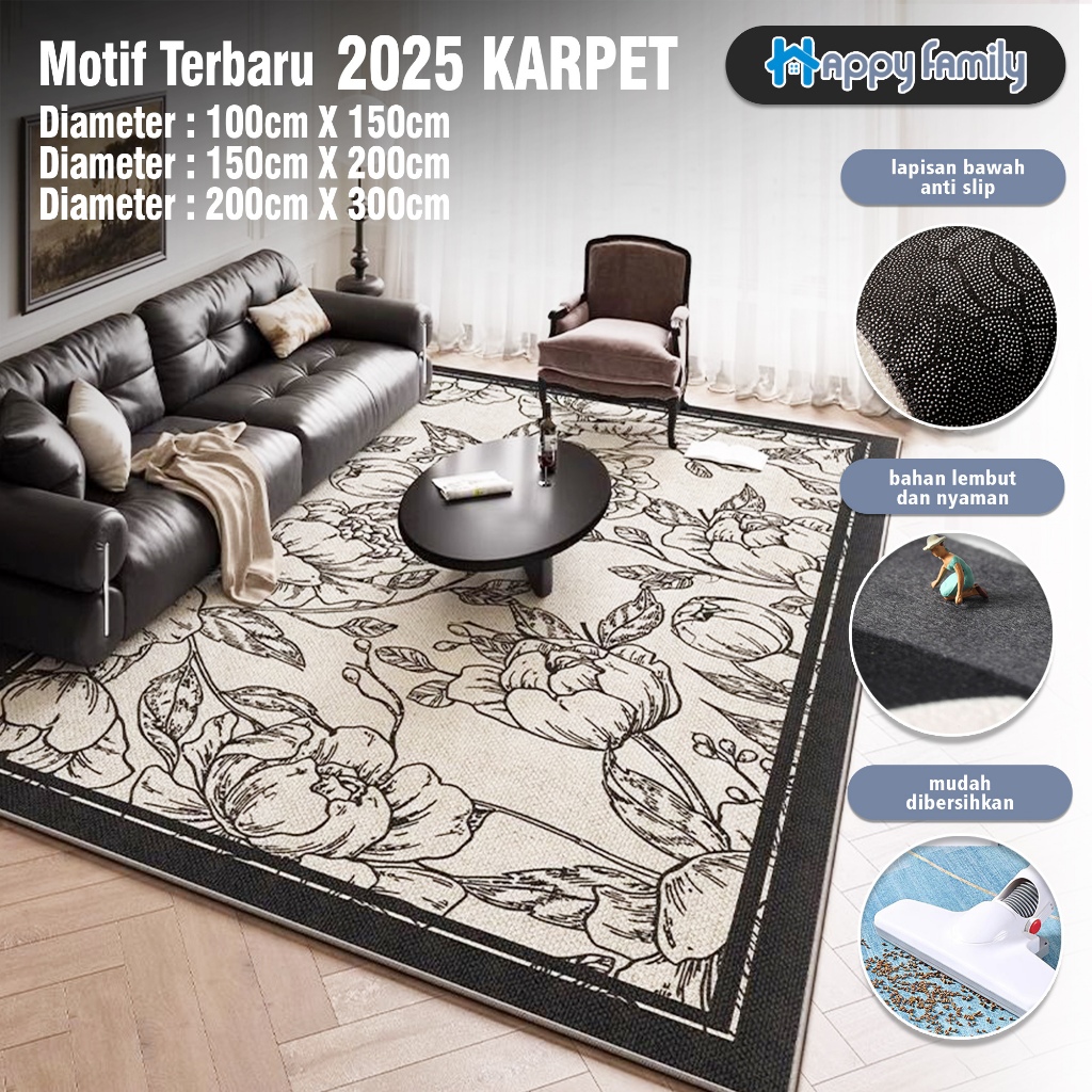 (HF) BELI LOKAL Karpet Lantai Eropa Permadani 100x150cm & 150x200cm & 200x300cm Anti Slip Ruang Tamu