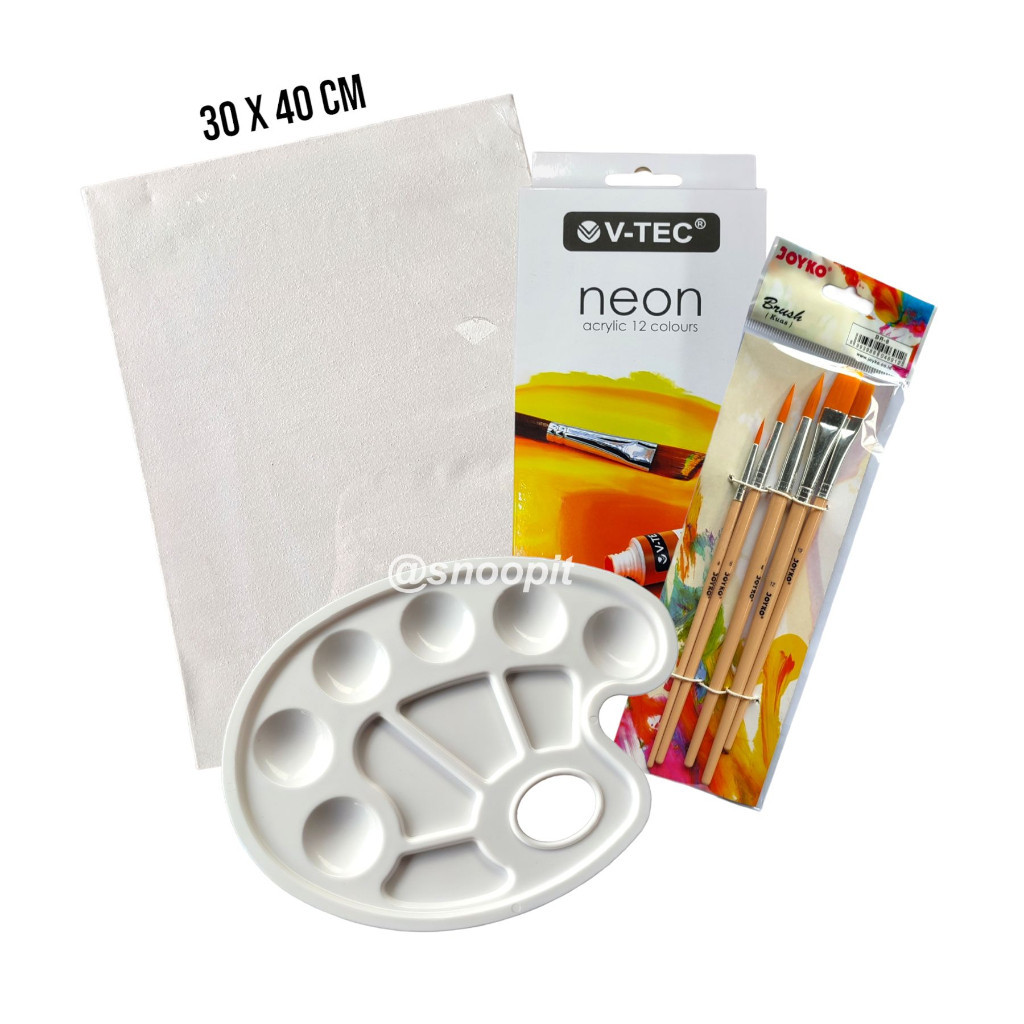 Paket Melukis Lengkap Set 4 in 1Jumbo Set Kanvas 30x40 Kuas Palet dan Cat Acrylic - Set- SHSNP