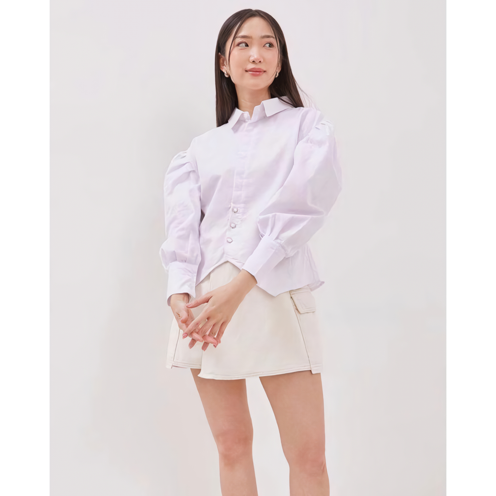 (Gratis Ongkir) Sanju Blouse - Halinka Shirt - Blouse Wanita Korean Style Linen - Kemeja Crop Lengan Panjang