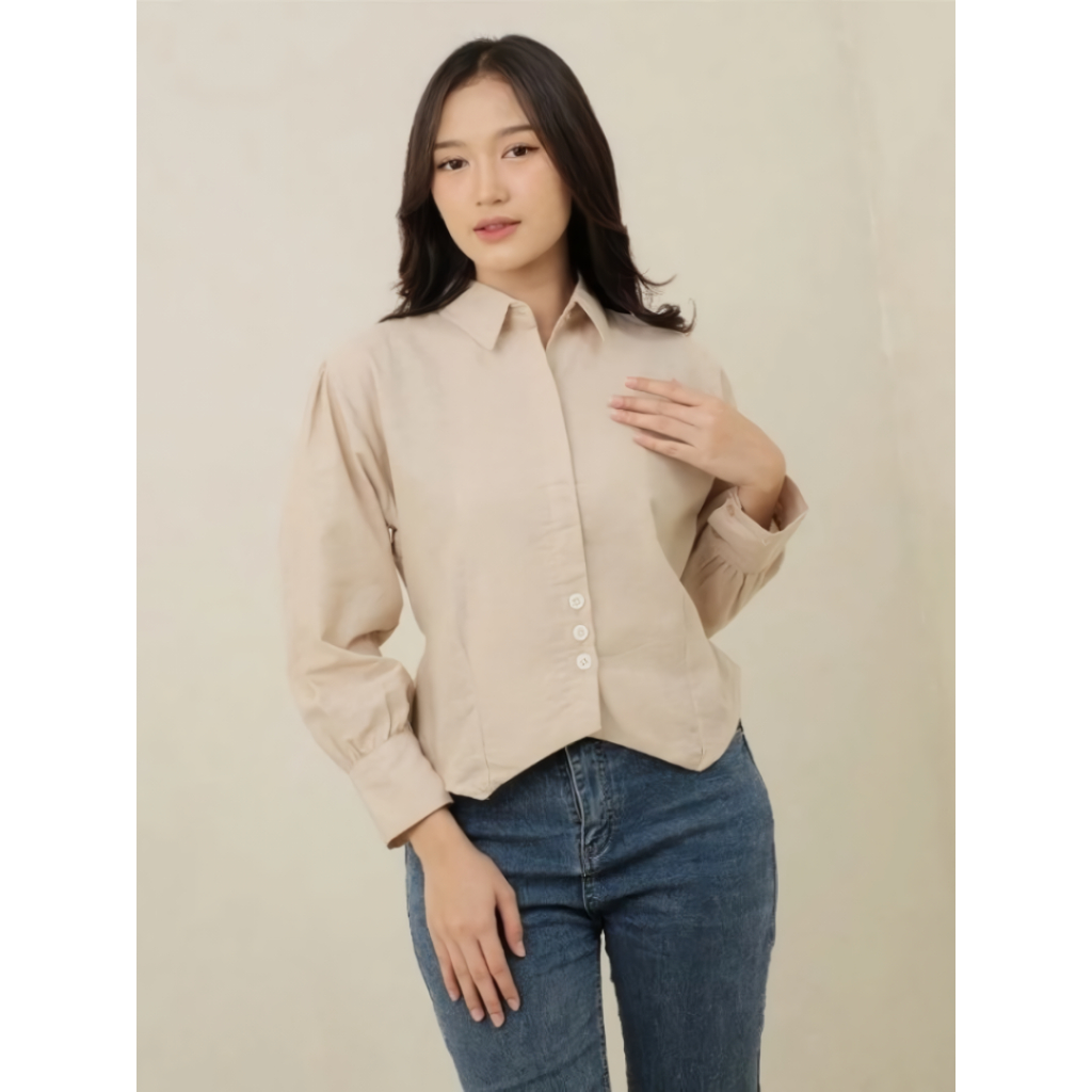 (Gratis Ongkir) Sanju Blouse - Halinka Shirt - Blouse Wanita Korean Style Linen - Kemeja Crop Lengan Panjang