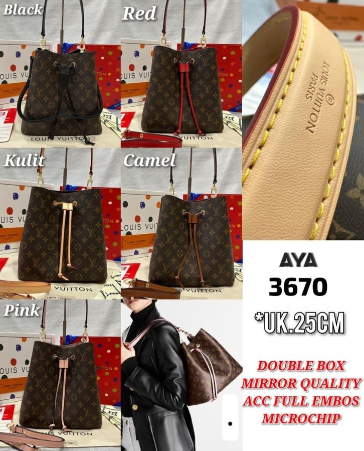 TAS LV NEONOE MM KULIT ASLI MIRROR VVIP/TAS WANITA ELPONG NEO SERUT 25CM/HANDBAG/SHOULDERBAG TAS BRANDED TERBARU
