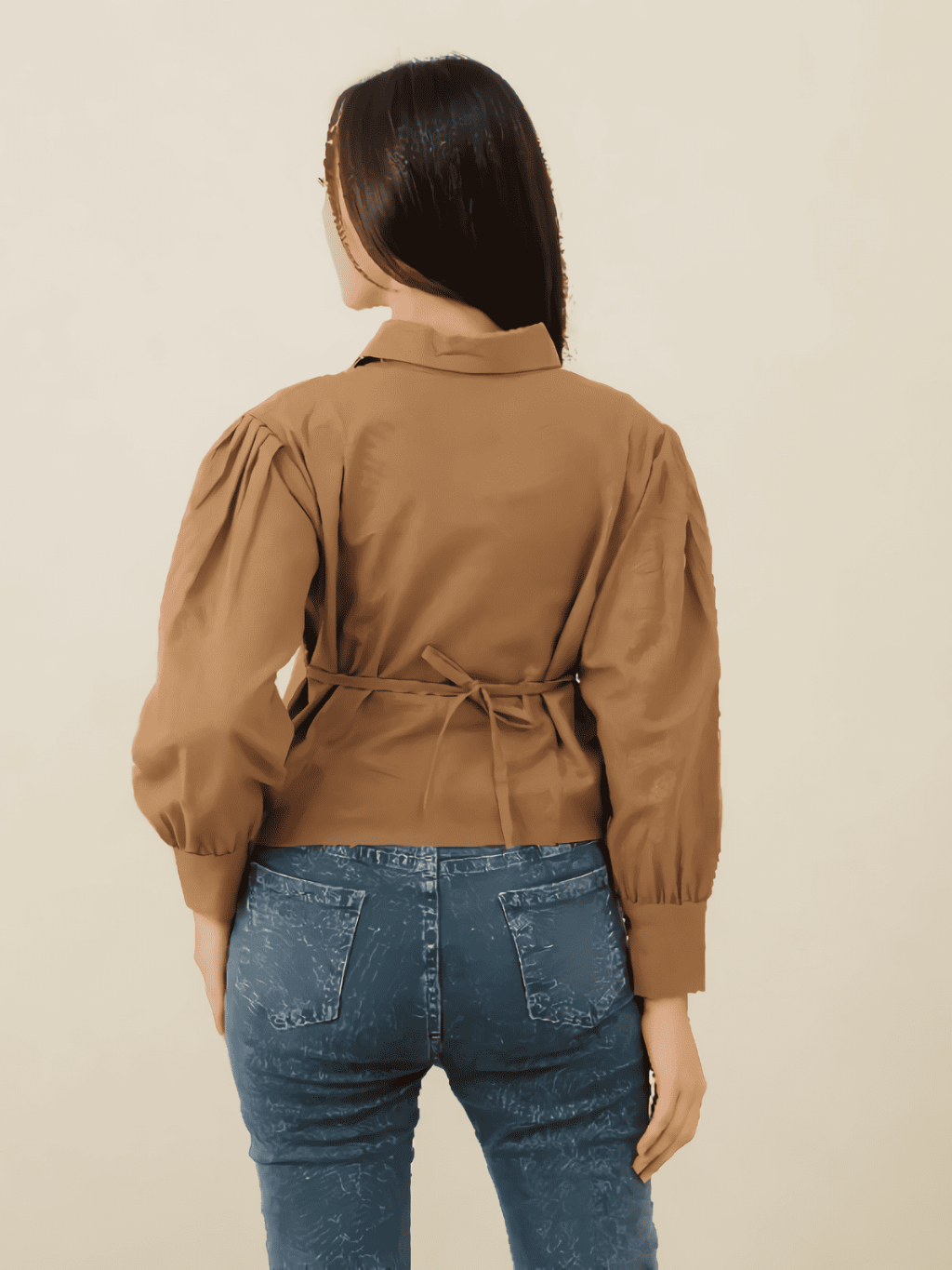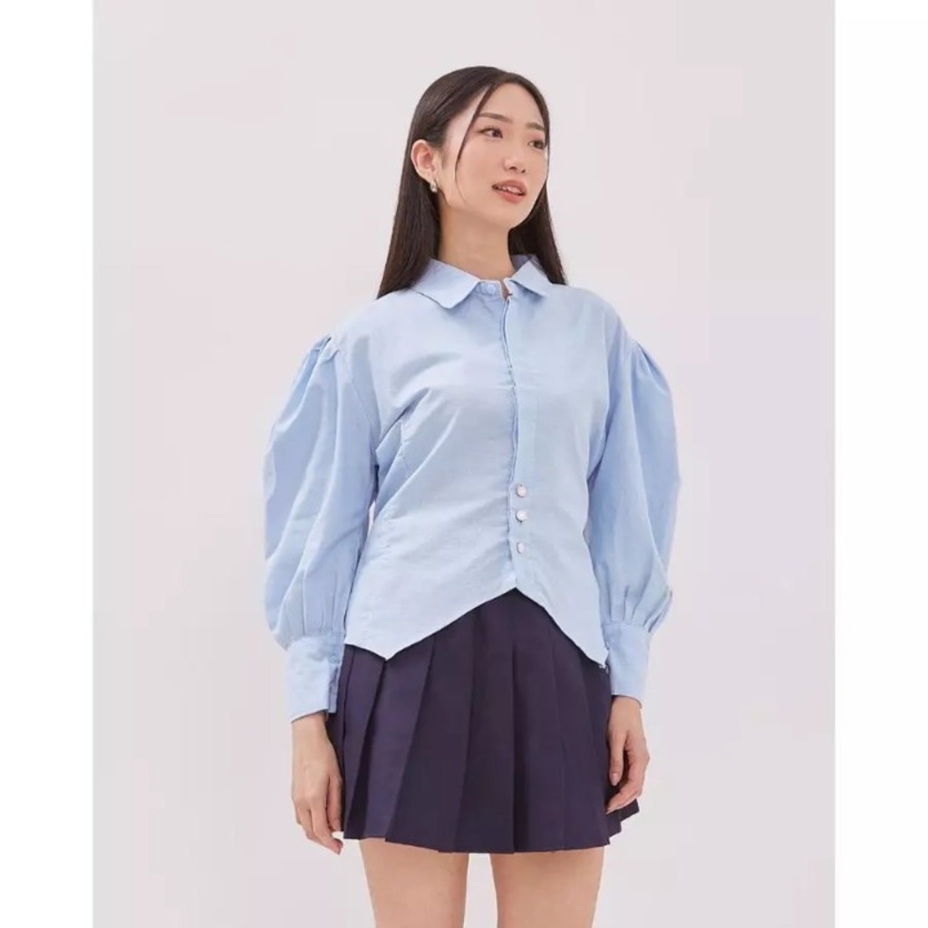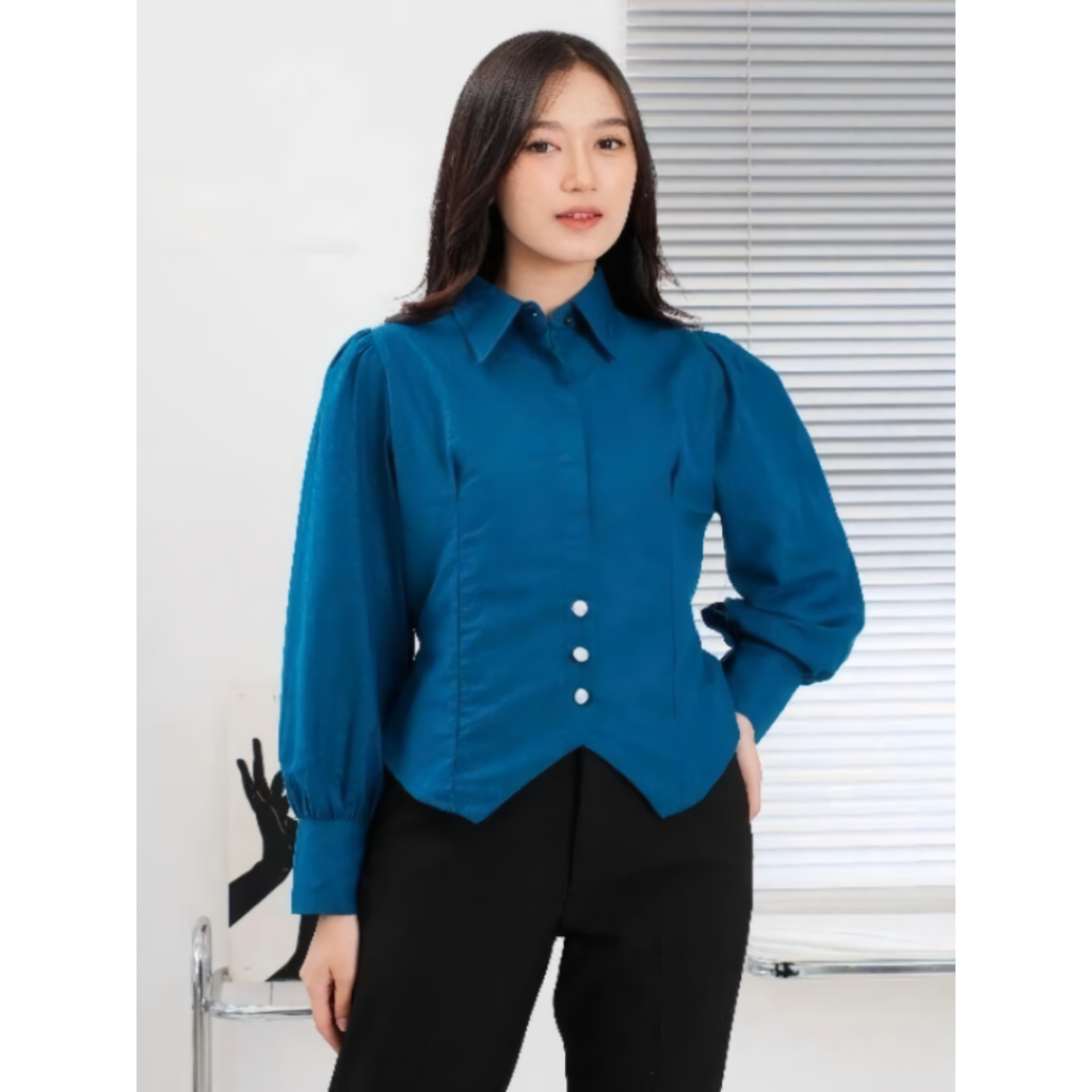 (Gratis Ongkir) Sanju Blouse - Halinka Shirt - Blouse Wanita Korean Style Linen - Kemeja Crop Lengan Panjang