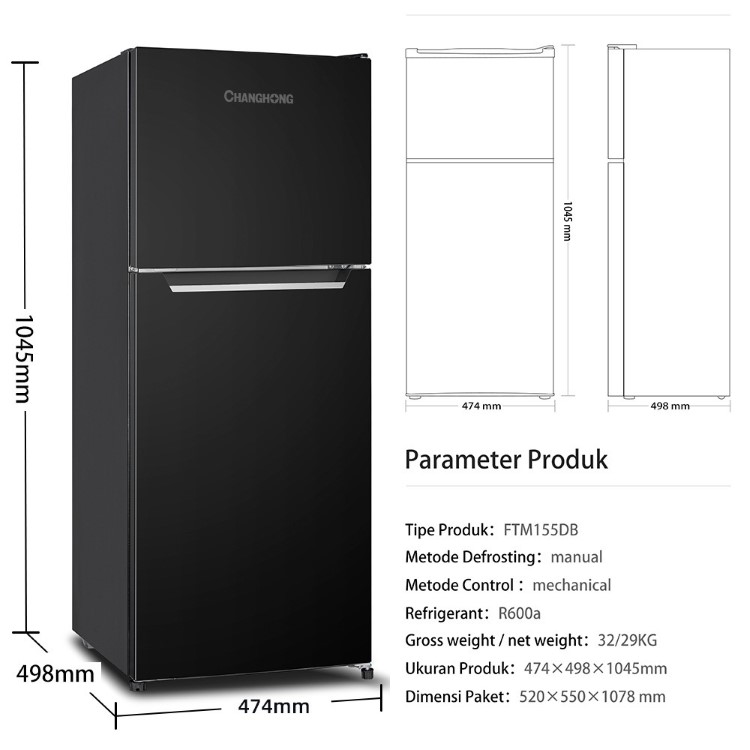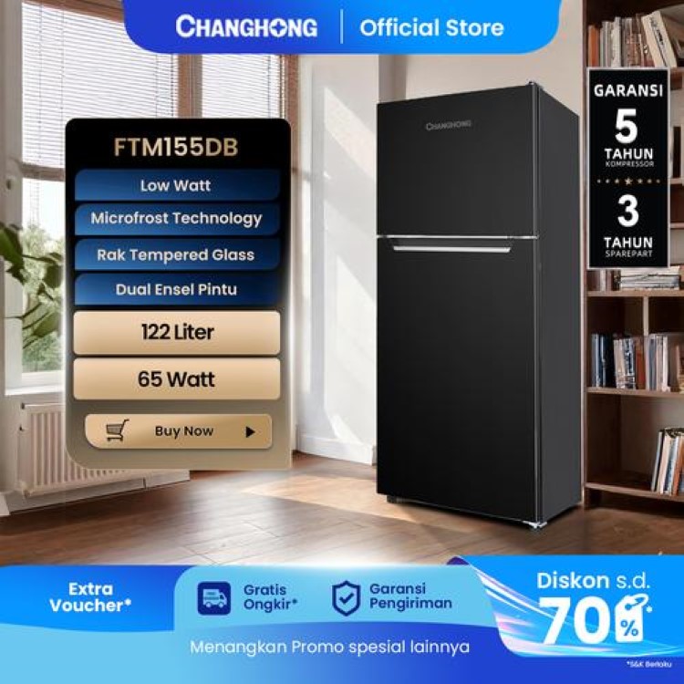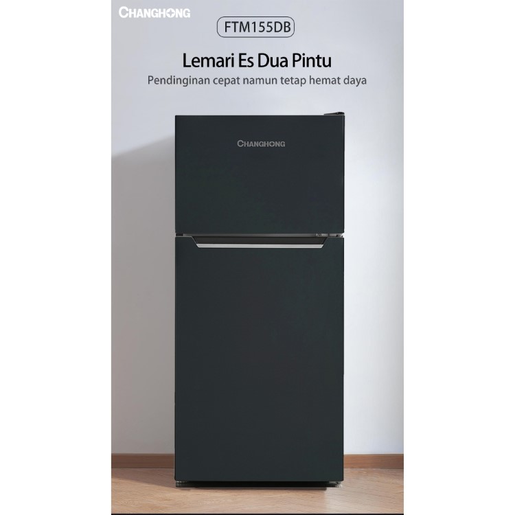 [Mall] Kulkas 2 Pintu Changhong Refrigerator Lemari Es Kapasitas 122 Liter FTM155DB Black Semi Auto Defrost Kulkas Ori