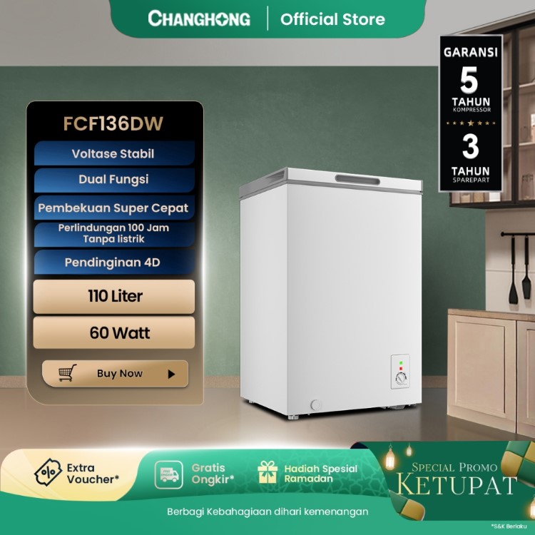 [Mall] Kulakas 1 Pintu FCF136DW Kapasitas 110 LiteFast Freezing Design Look Minimalis Big Capacity Voltase Yang Stabil