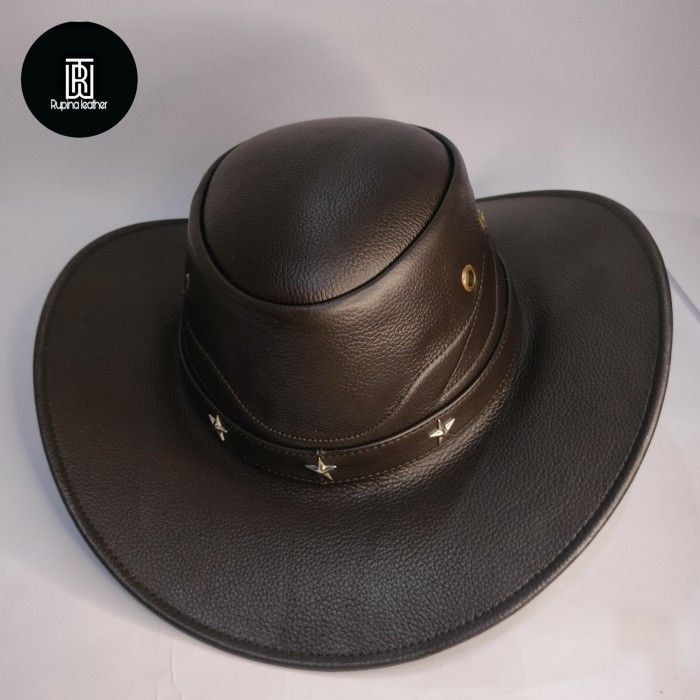 Topi Pria topi kulit pria original Koboy koboi laken Cowboy big size jumbo XXL - Cokelat S 55-56cm