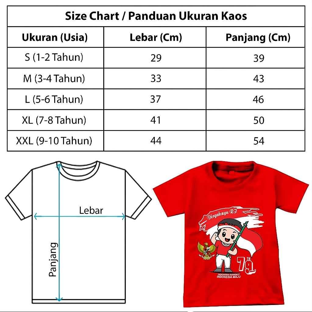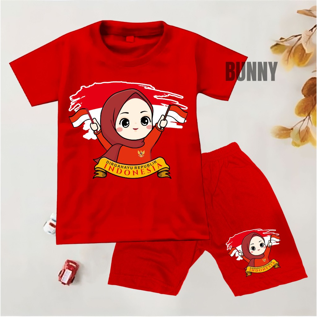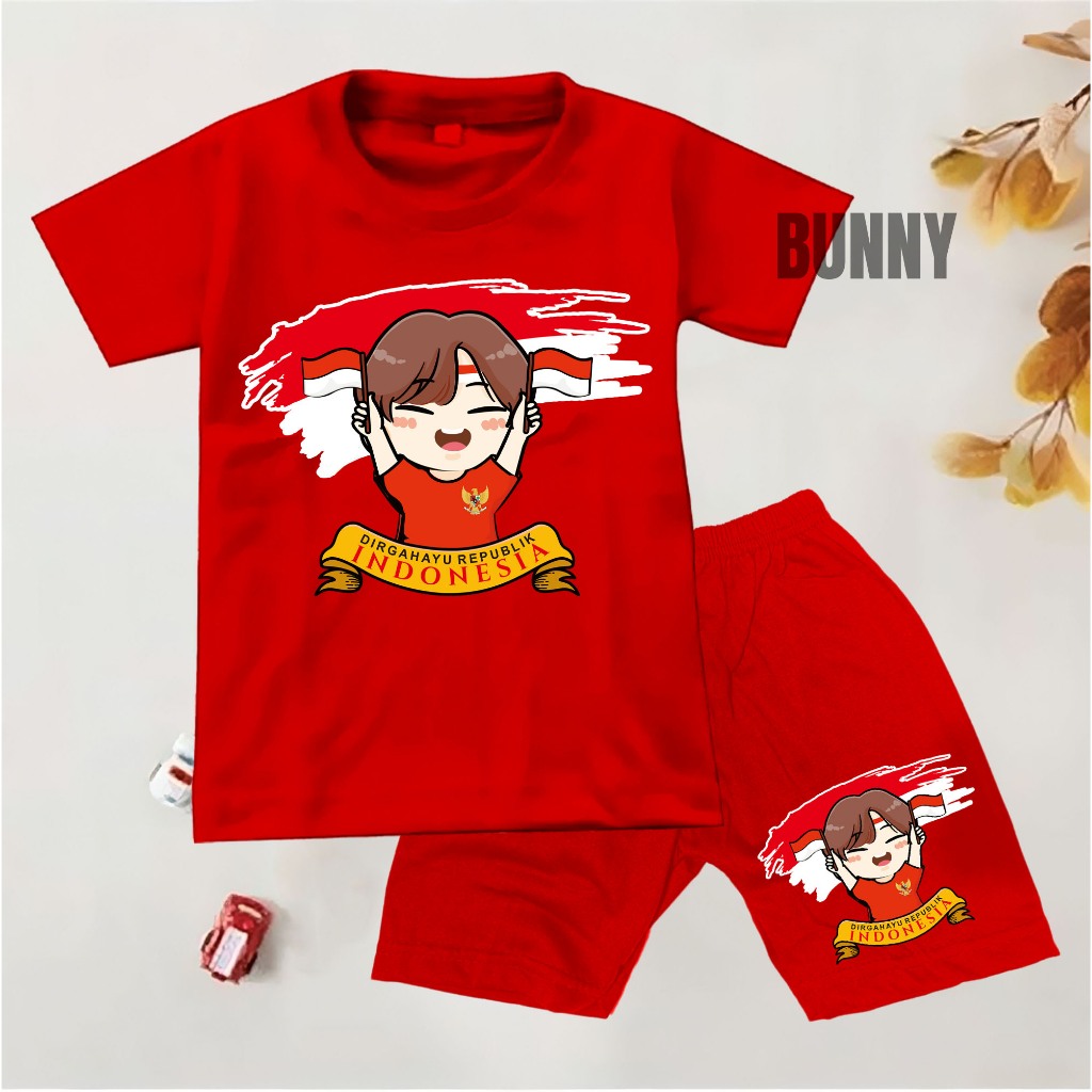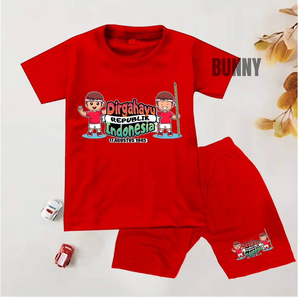 Baju setelan anak laki-laki / perempuan motif 17 AGUSTUS KEMERDEKAAN INDONESIA UMUR 1-10 TAHUN