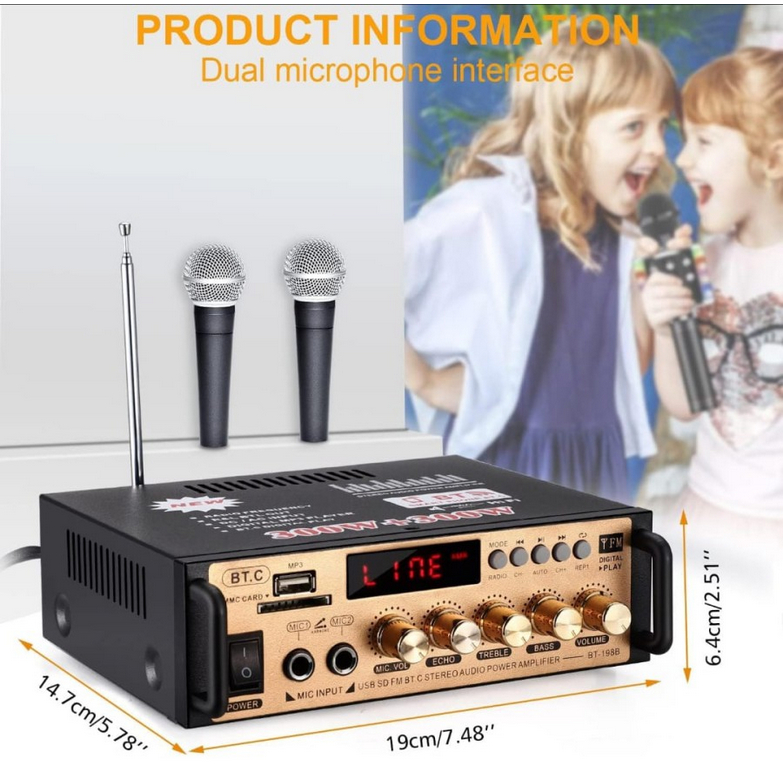 AMPLIFIER BLUETOOTH SUBWOOFER / NOIR AMPLIFIER MKC KIMISO BT-198E STEREO POWER AMPLIFIER AUDIO BLUETOOTH ORIGINAL