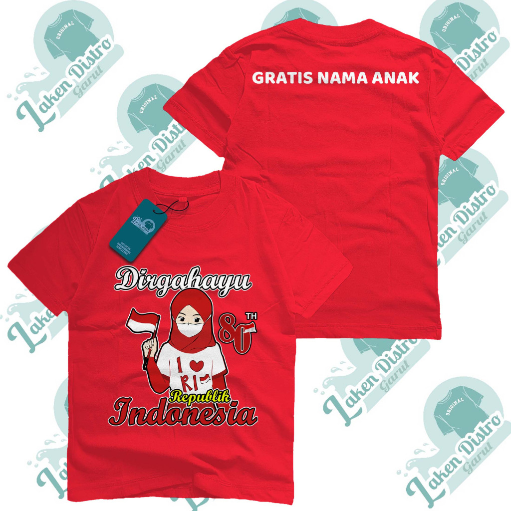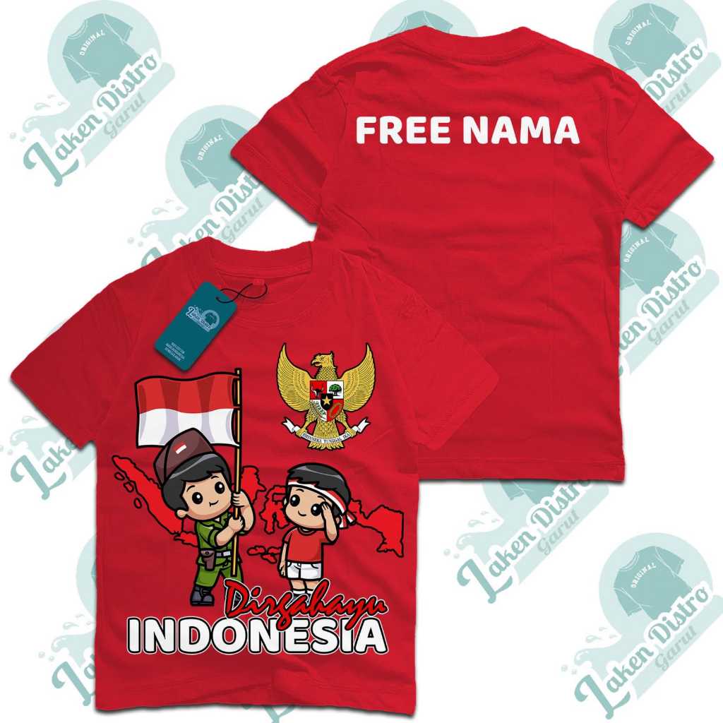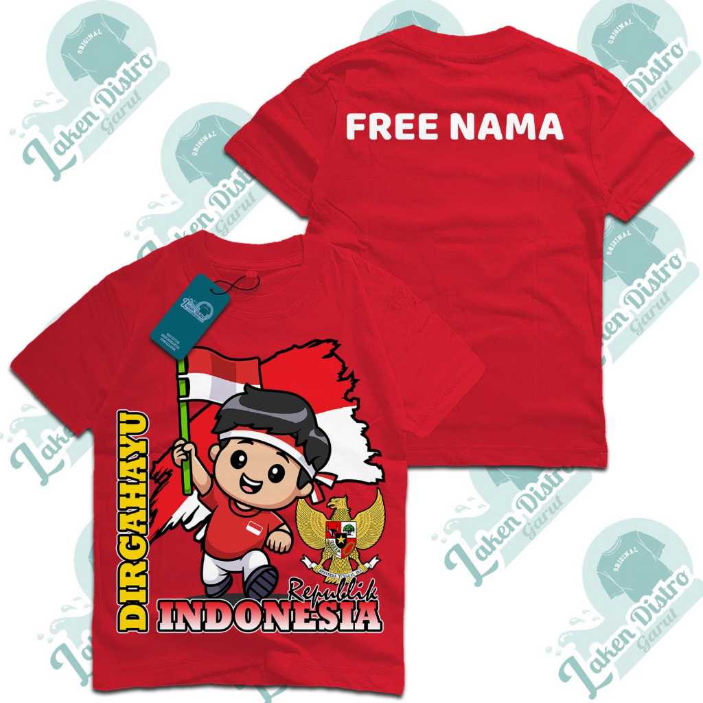 Laken distro Official kemerdekaan 17 Agustus Baju Anak Costum Nama Bahan Cotton Combad 30S 1-13 thn