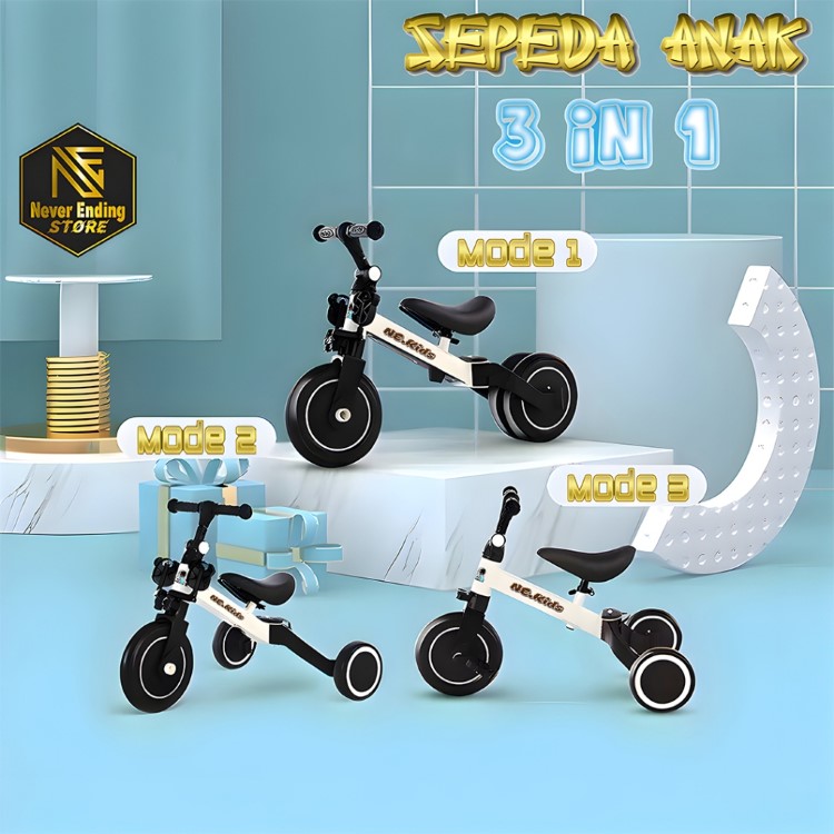 Sepeda Anak NEKIDS 3in1 Balita Perempuan Laki Laki Roda 2 Roda 3 Bisa Di Gowes