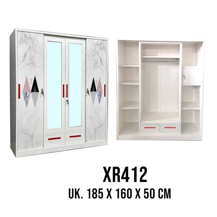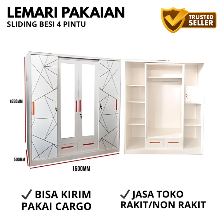 LEMARI BESI SLIDING 4 3 PINTU KACA GANTUNG BAJU GAMIS PAKAIAN JUMBO MINIMALIS MODERN AESTHETIC MURAH BEST SELLER