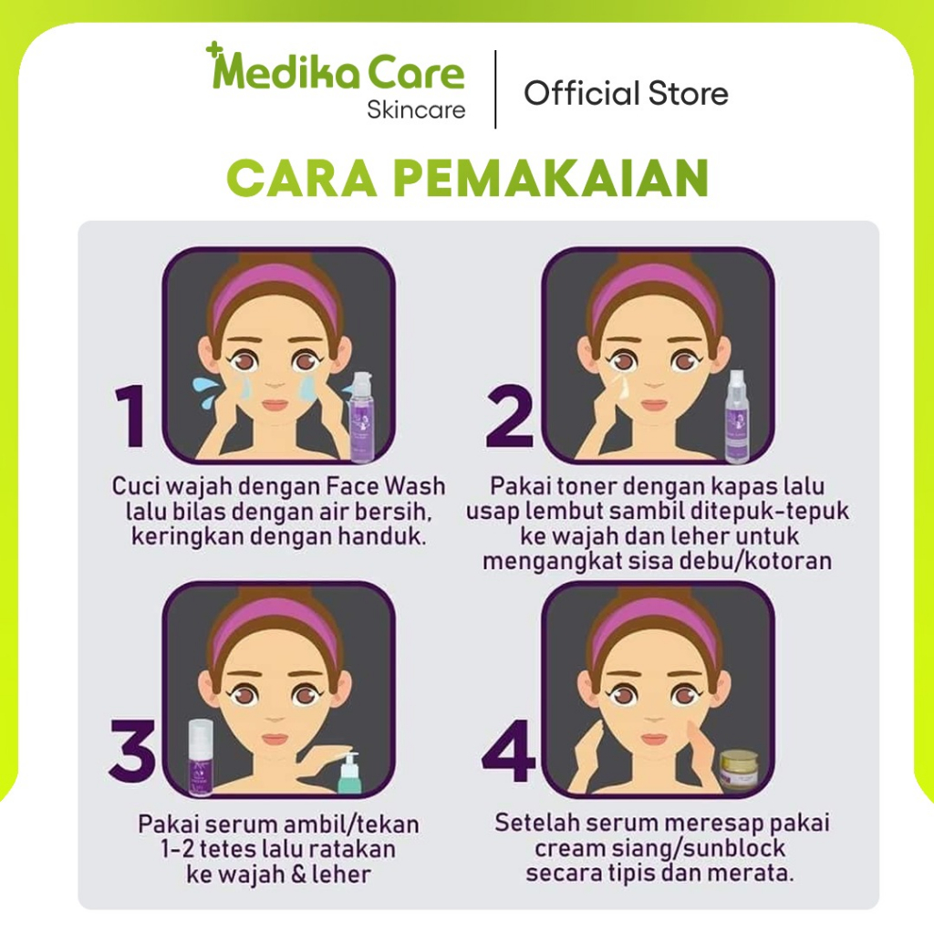 MEDIKA CARE BASIC SKINCARE 3 IN 1, MENCERAHKAN KULIT KUSAM (FACIAL WASH + MOISTURIZER + SUNSCREEN)