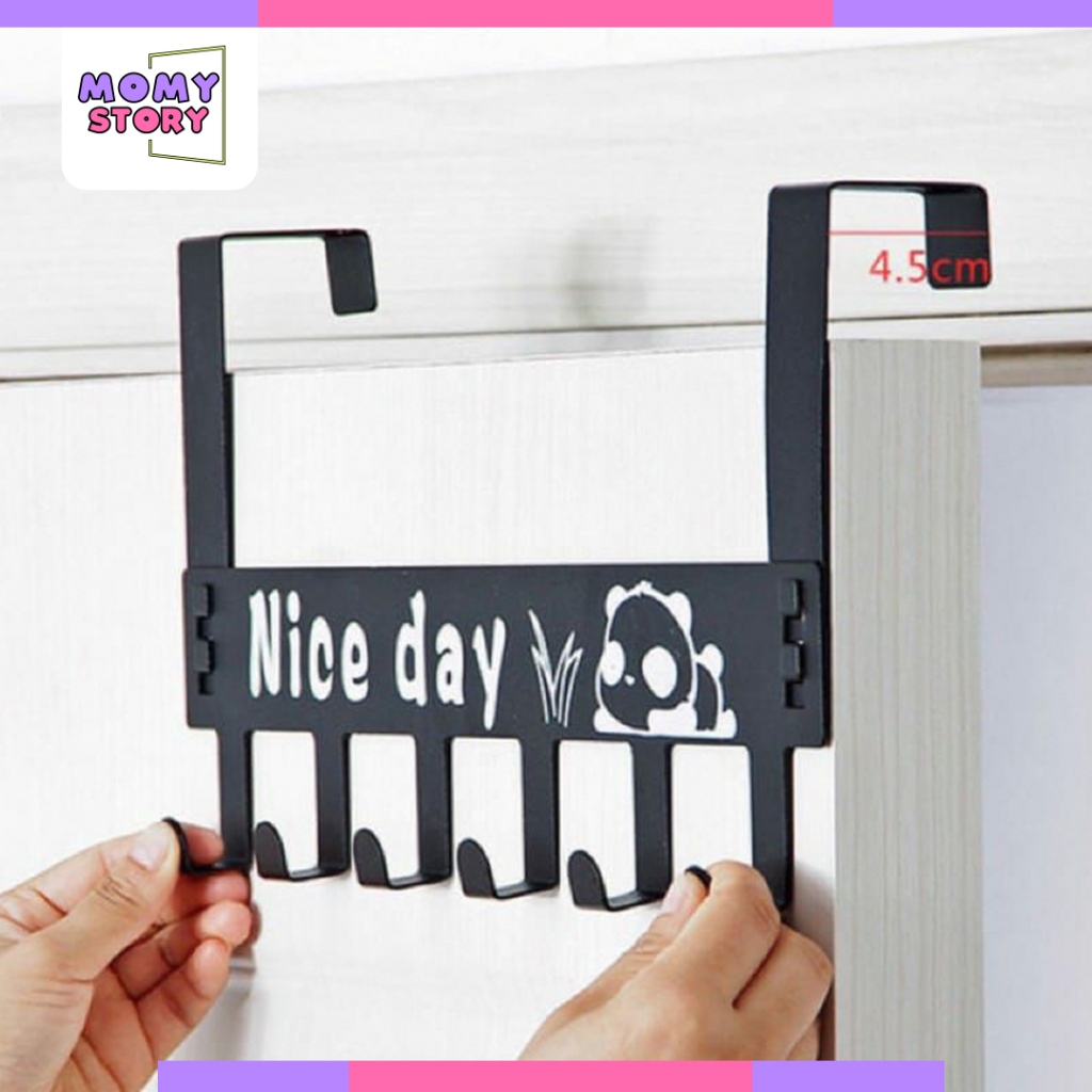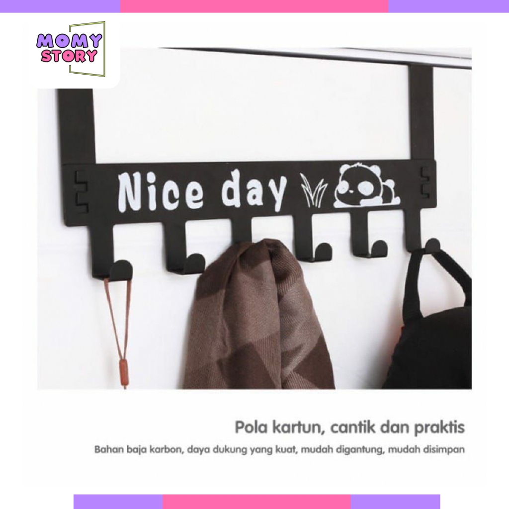 Gantungan Baju Tempel Pintu Minimalis HOOK NICE DAY Belakang Pintu Tanpa Paku Kuat 6 Kaitan Enudden