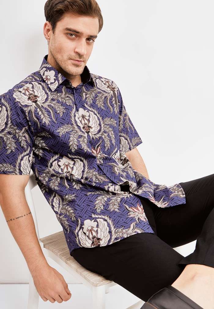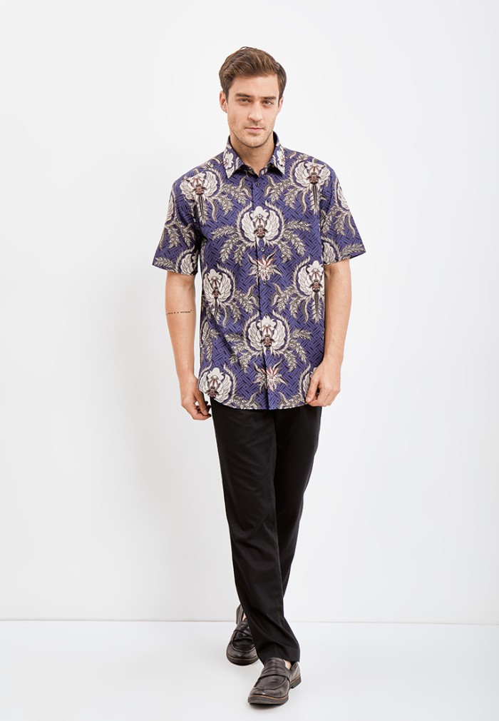 ALISAN KEMEJA LENGAN PENDEK BATIK KOMBINASI 00257 BTKKB00257BIRUSS - S