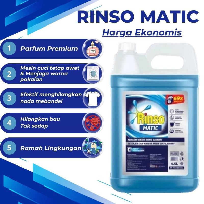 Rinso Matic Professional Deterjen Loundry Kiloan Wangi Premium 5 Liter (non stiker)
