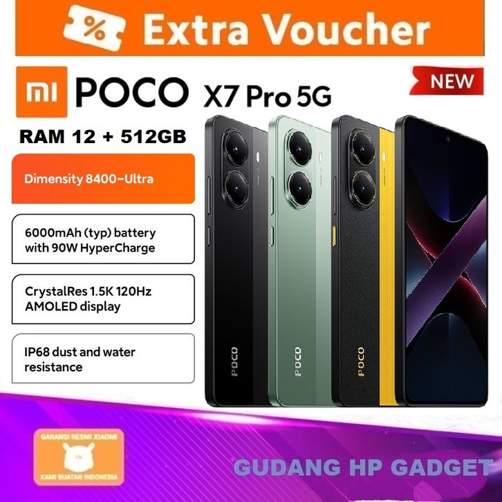 HP XIAOMI POCO X7 Pro 5G 12/512GB GARANSI RESMI Dimensity 8400-Ultra NFC 6000mAh 90W HyperCharge