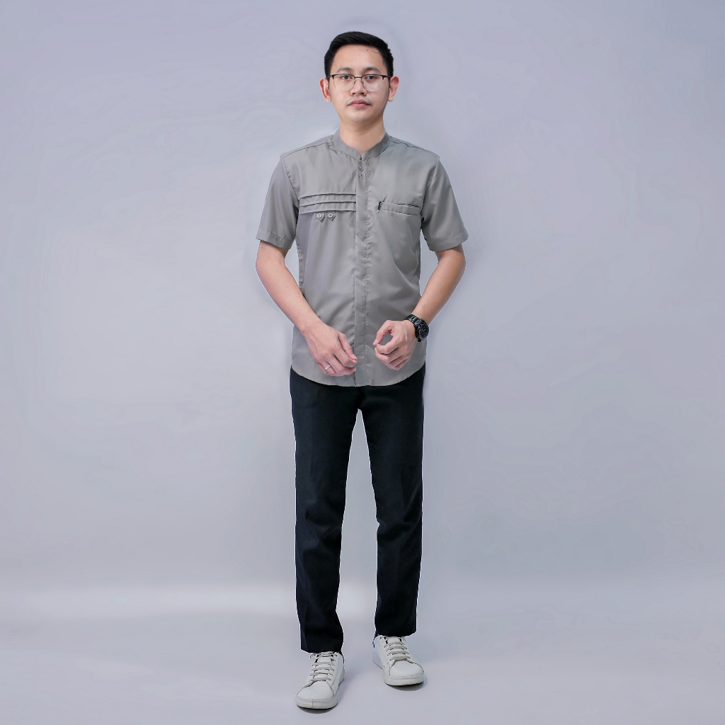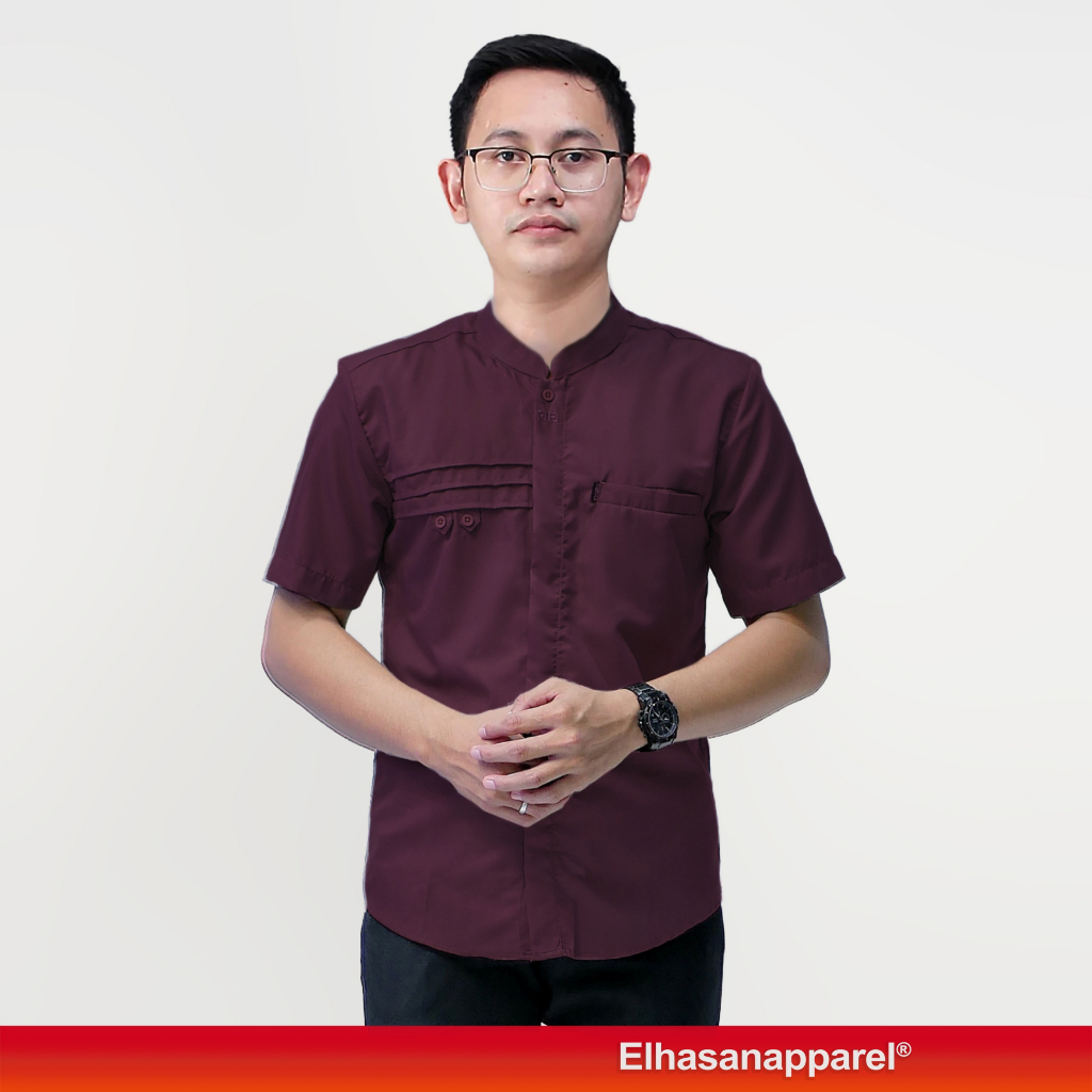 Baju Koko Pria Elrumi Lengan Pendek Motif Hadji Warna Burgundy