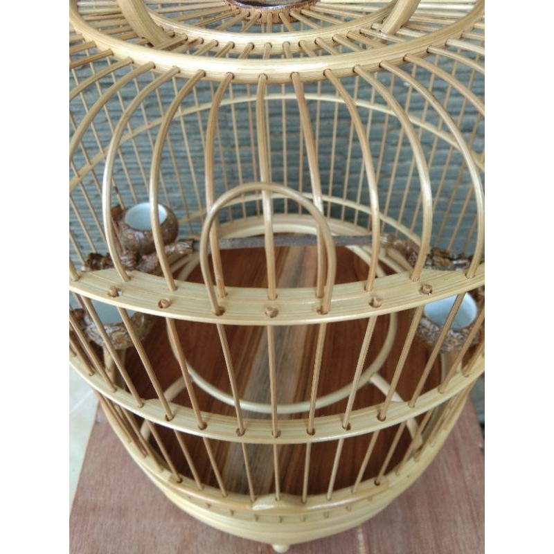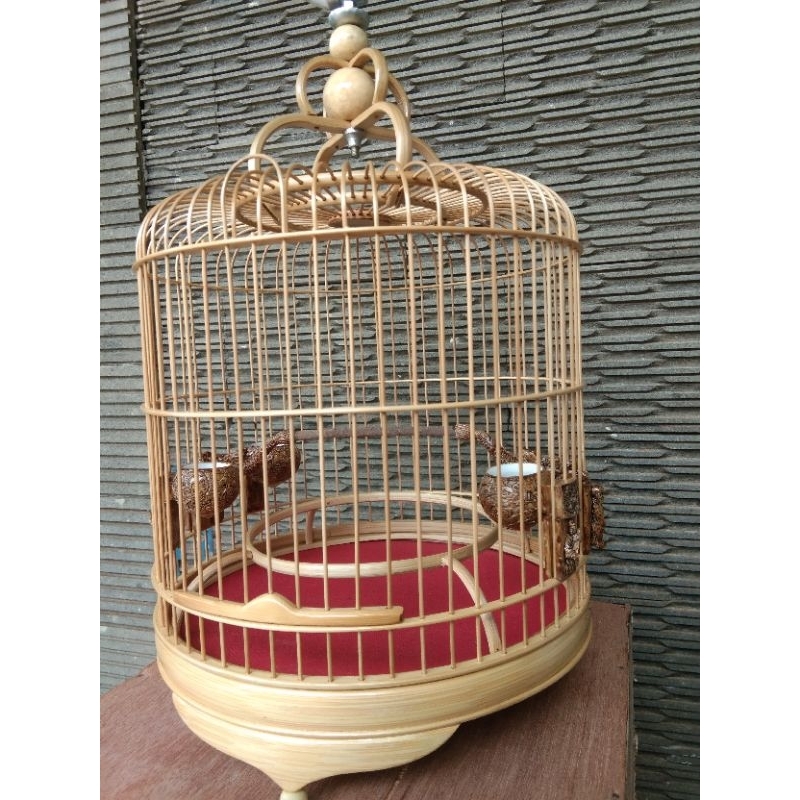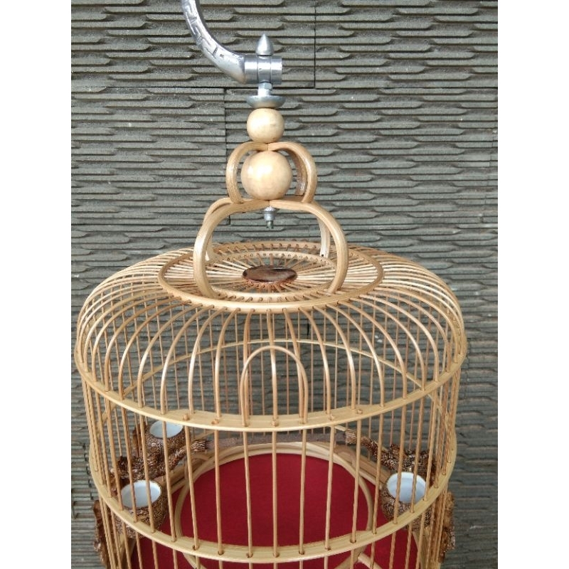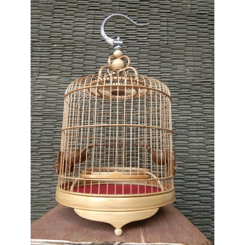 Sangkar Burung Sangkar Cungkok Pleci Model Ceper Sudah Pernis Pulset Cepuk dan Tangkringan Alas Kayu Jati