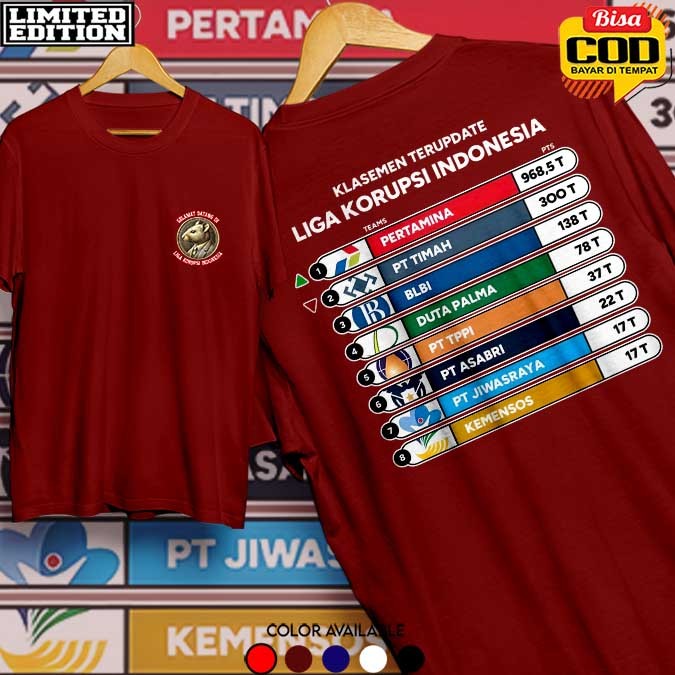 KAOS LIGA KORUPSI INDONESIA KORUPTOR DISTRO VIRAL KATA KAOS LOMBA KORUPSI UNISEX KAOS KATA KATA