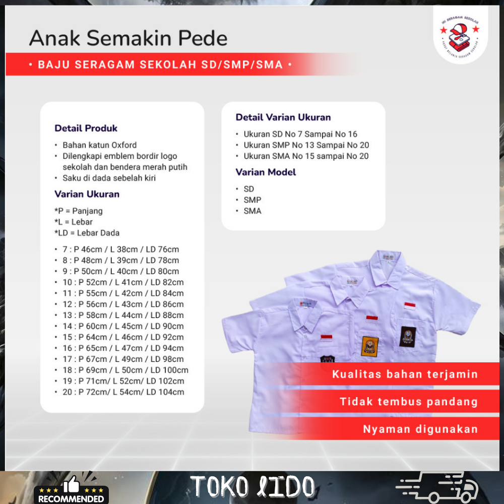 Seragam Sekolah SMP Laki laki Perempuan MI SD SMA Baju Setelan Sekolah anak Wanita Pramuka Rapilo