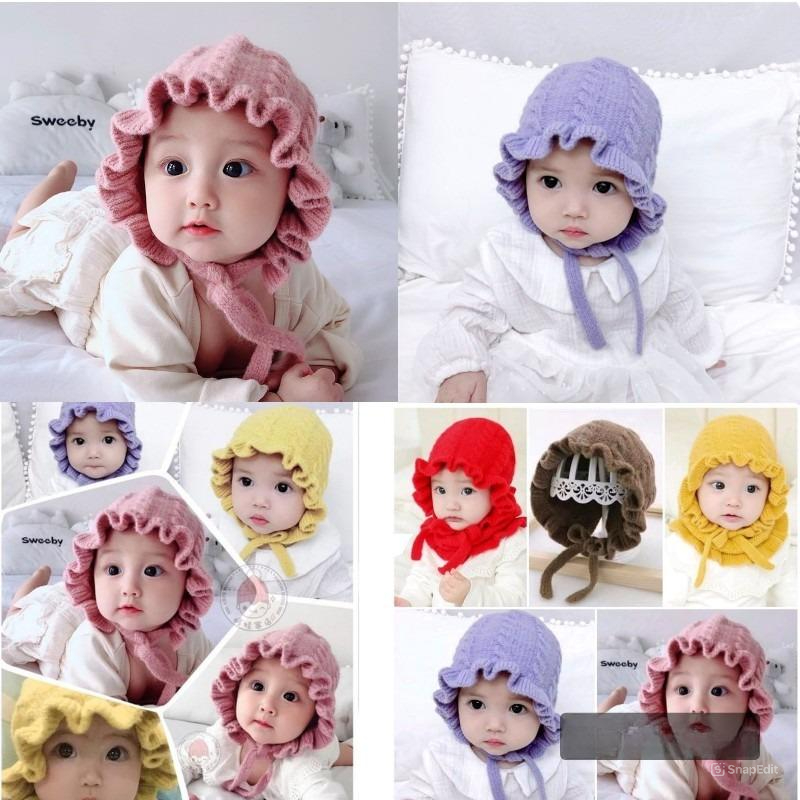 DP 0 TOPI KUPLUK BAYI BONET BONNET RUFFLE HAT BABY GIRL PEREMPUAN RAJUT TOPI RAJUT BONNET BABY GIRL PREMIUM