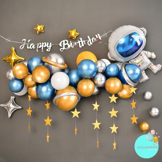 ASTRONOT ELEGANT CHROME DEKORASI SET PAKET DEKORASI ULANG TAHUN ANAK LAKI BALON FOIL ASTRONOT