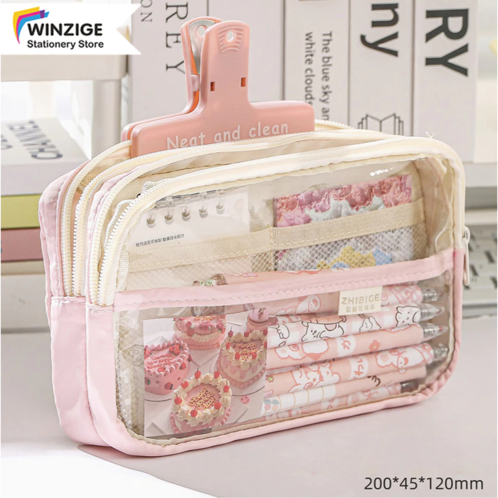 Tempat Pensil Anak Perempuan Transparan Large Pen Pouch Aesthetic Premium Stationery Organizer Premium Terbaru Terlaris