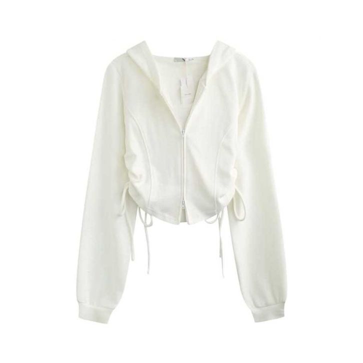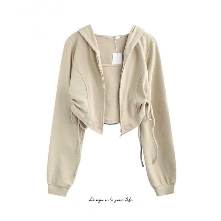 TERBARU Jaket Croope Wanita Korean Style Adella Crop Zipper Serut - jaket casual atasan wanitan kekinian