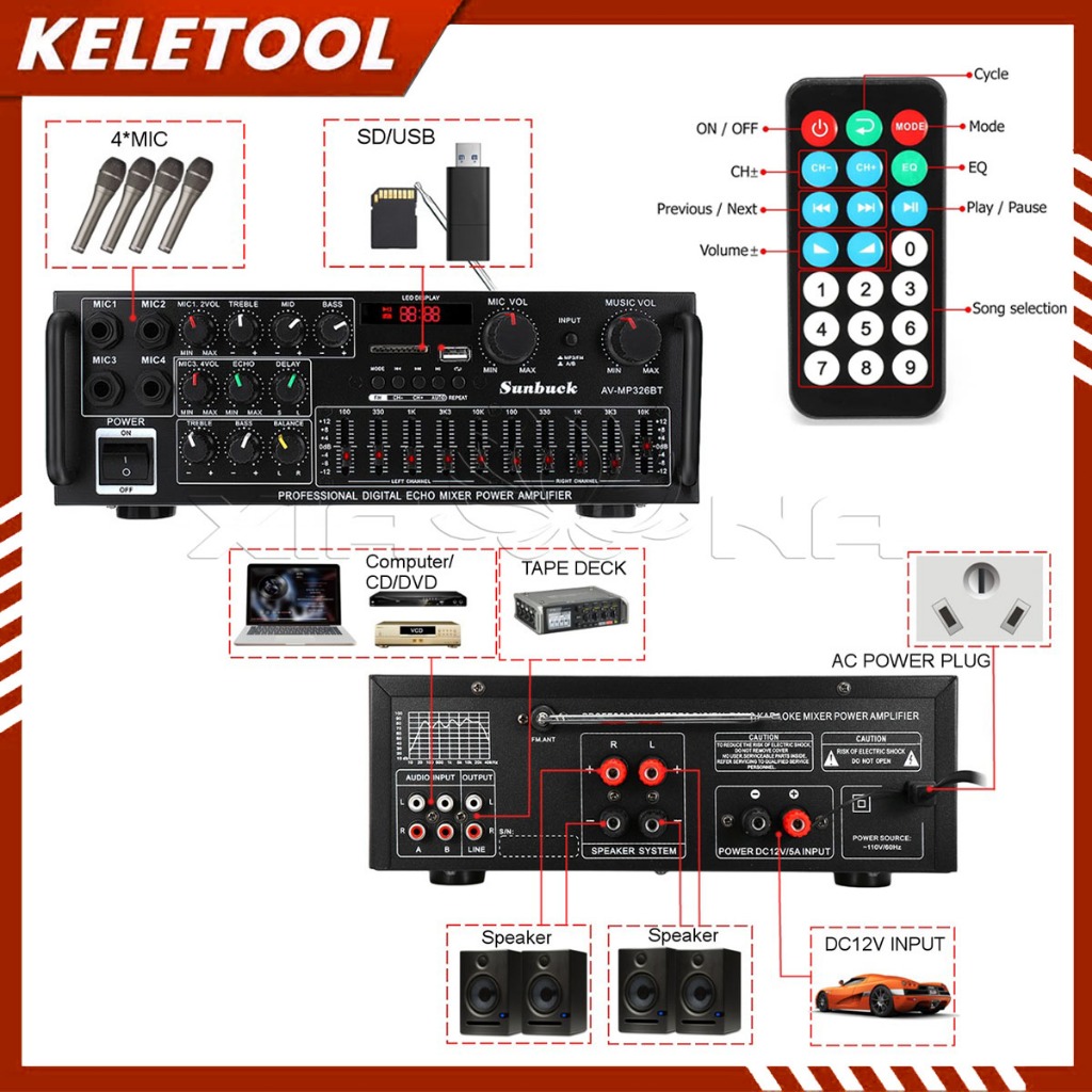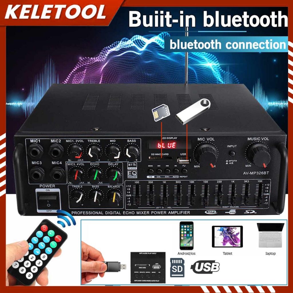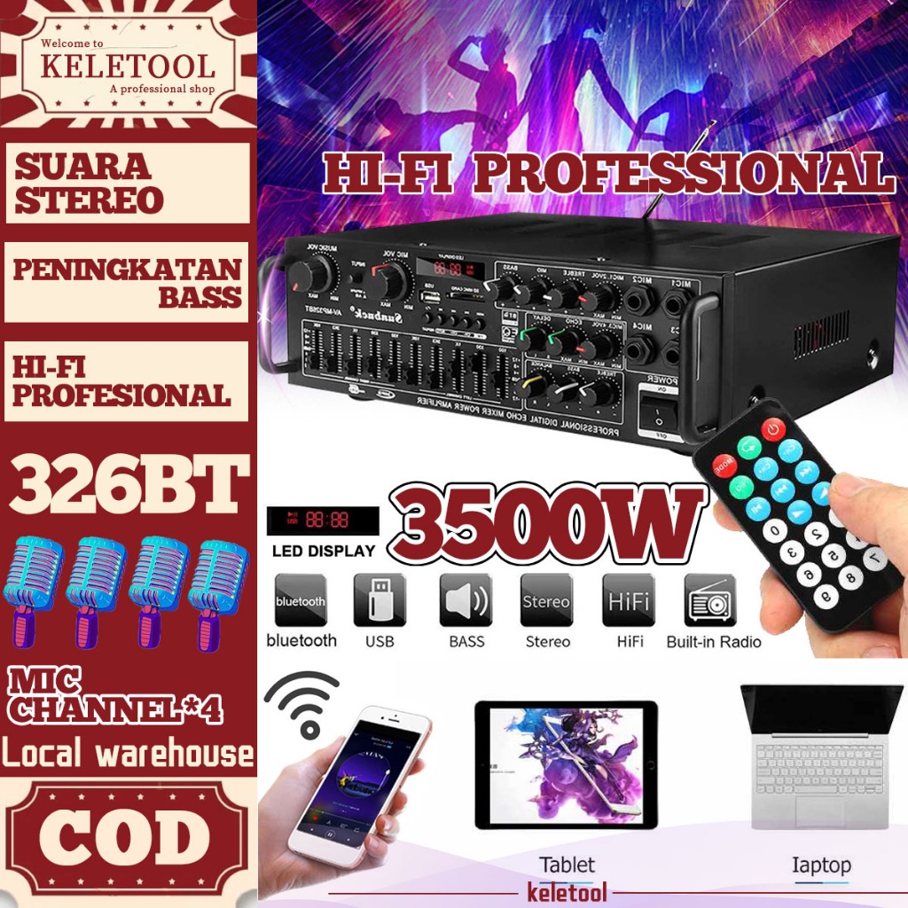AMPLIFIER BLUETOOTH SUBWOOFER / 3500W AMPLIFIER BLUETOOTH TREBLE BASS BOOSTER 326BT AMPLI KARAOKE EQUALIZER SUBWOOFER