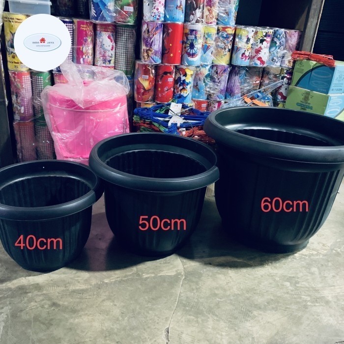 POT HITAM 60CM PLASTIK TEBAL / POT TANAMAN HITAM JUMBO/KEMBANG/BUNGA - 40CM