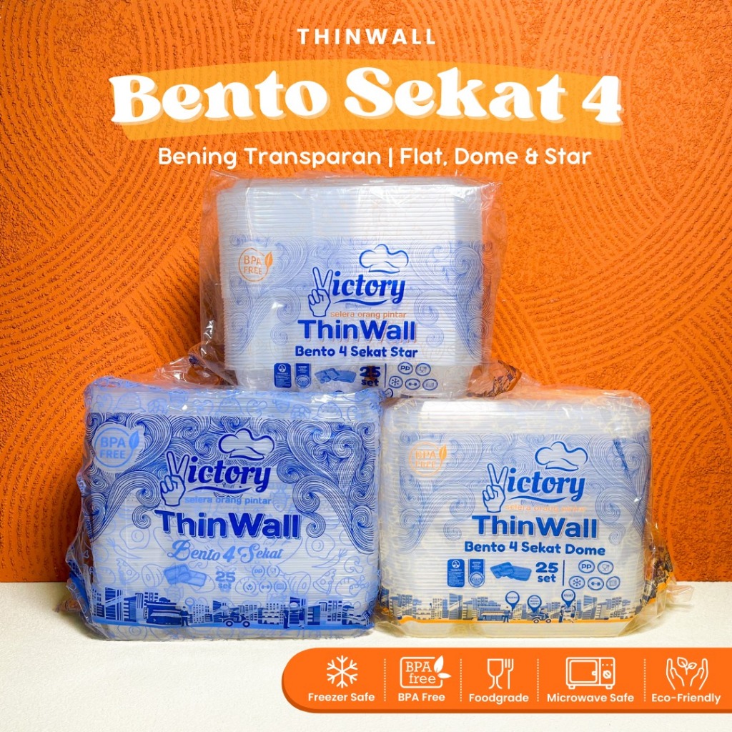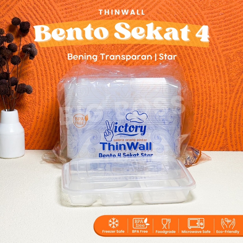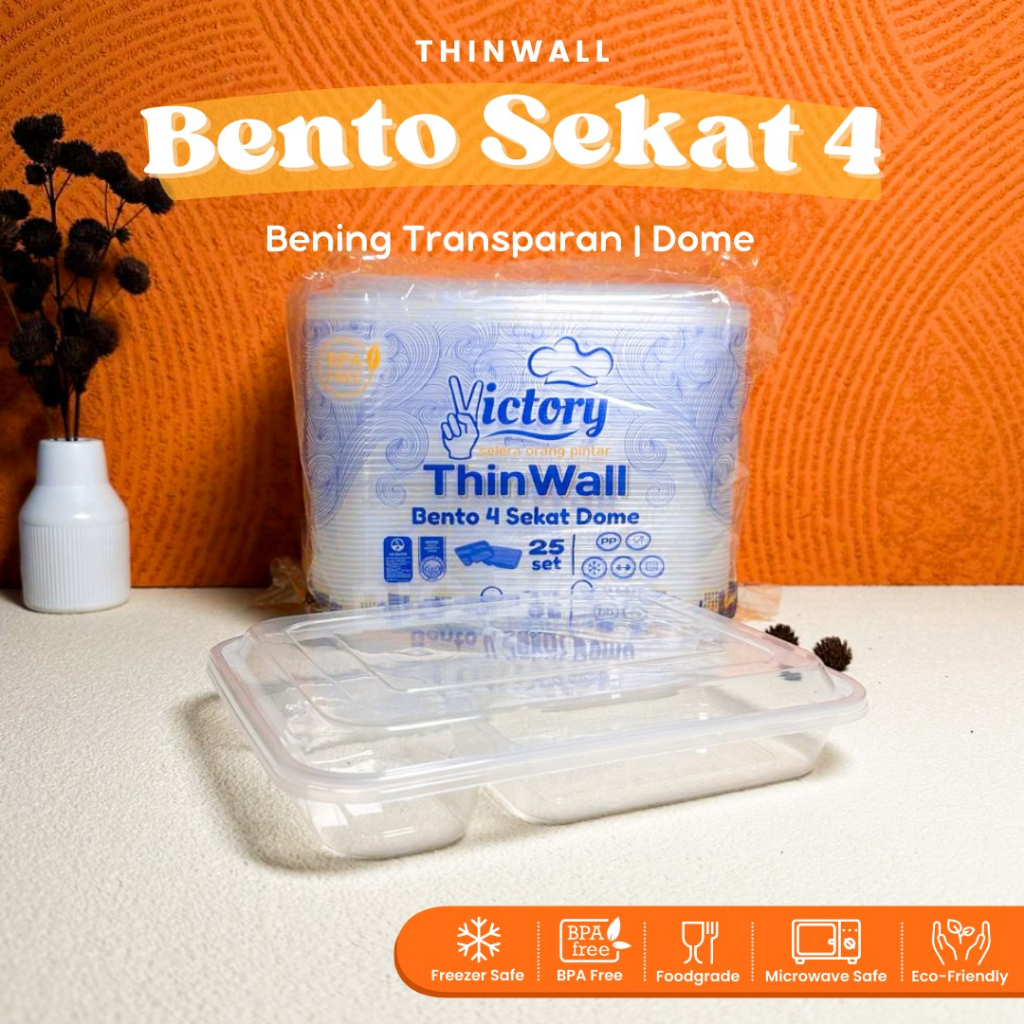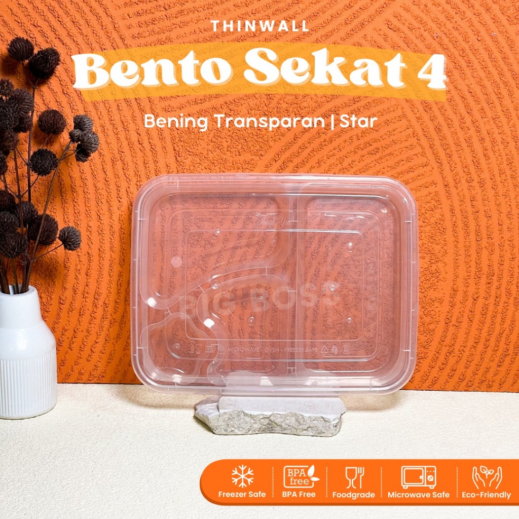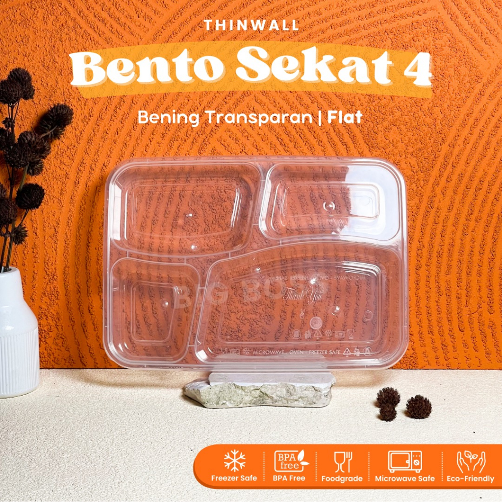 [ISI 25 PCS] Thinwall Bento Sekat 4 + Tutup / Thinwall Bento Kotak Makan Bekal / Kotak Makan Plastik / Food Container Fo
