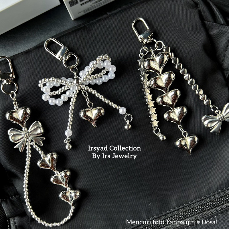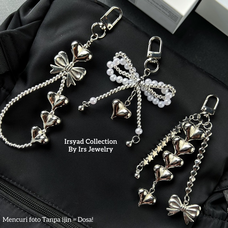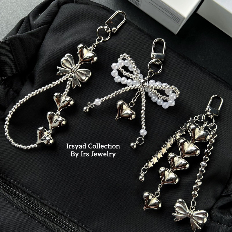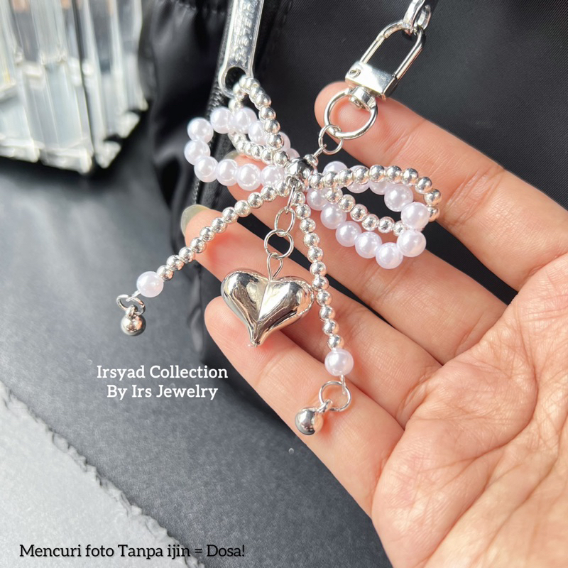 Love Ribbon Keychain Y2K | Gantungan Kunci Hati Silver