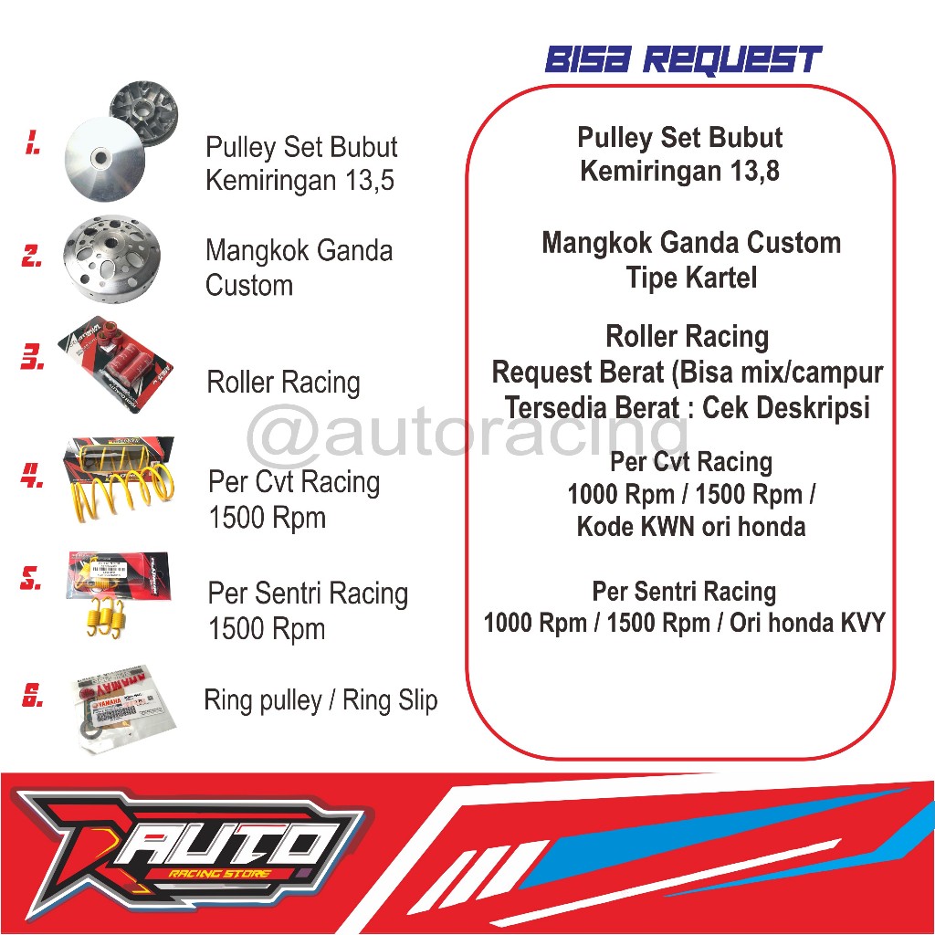 Paket Full Upgrade Kirian Cvt Mio Smile M3 J Gt Soul S Z Sporty Gear Karburator Rumah Roller & Pulley Set - AUTO RACING