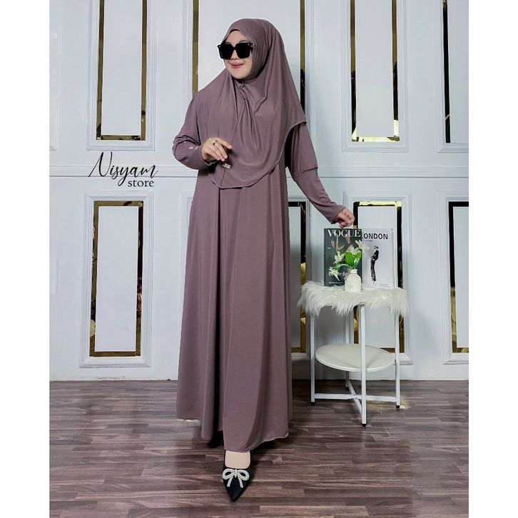 TERLAKU 𝗡𝗜𝗦𝗬𝗔𝗠𝗦𝗧𝗢𝗥𝗘 Aliyyah Button Abaya Set Hijab Dress Muslimah Jersey Premium acosmn