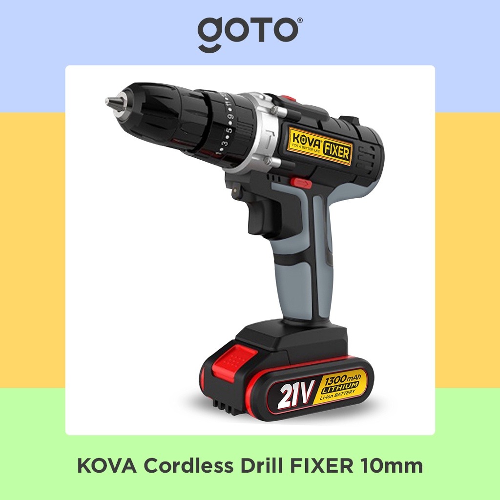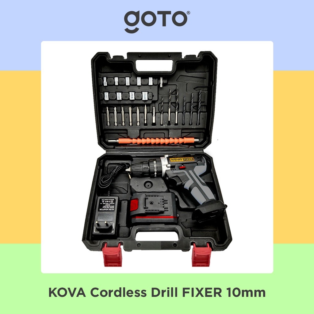 Kova Fixer Cordless Drill 10mm Set Mesin Bor Tangan Baterai Tembok 21V