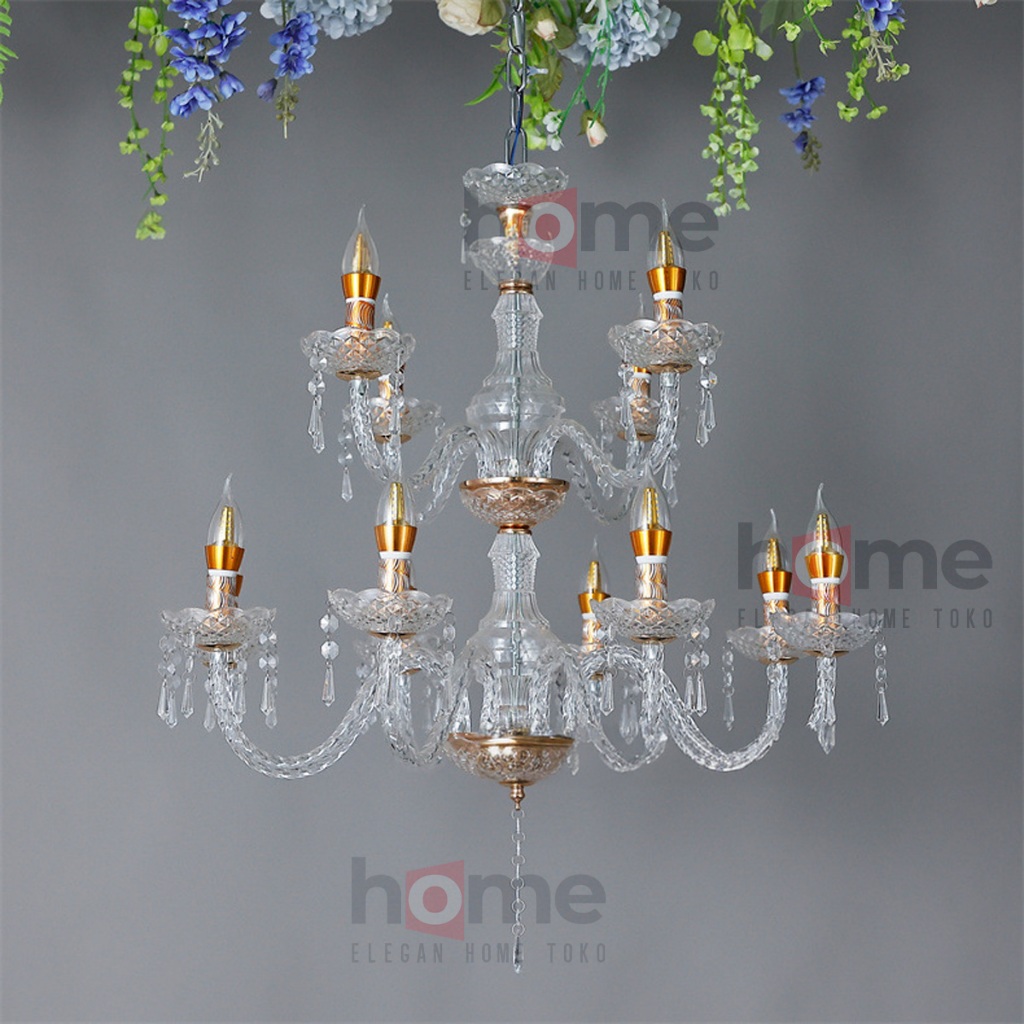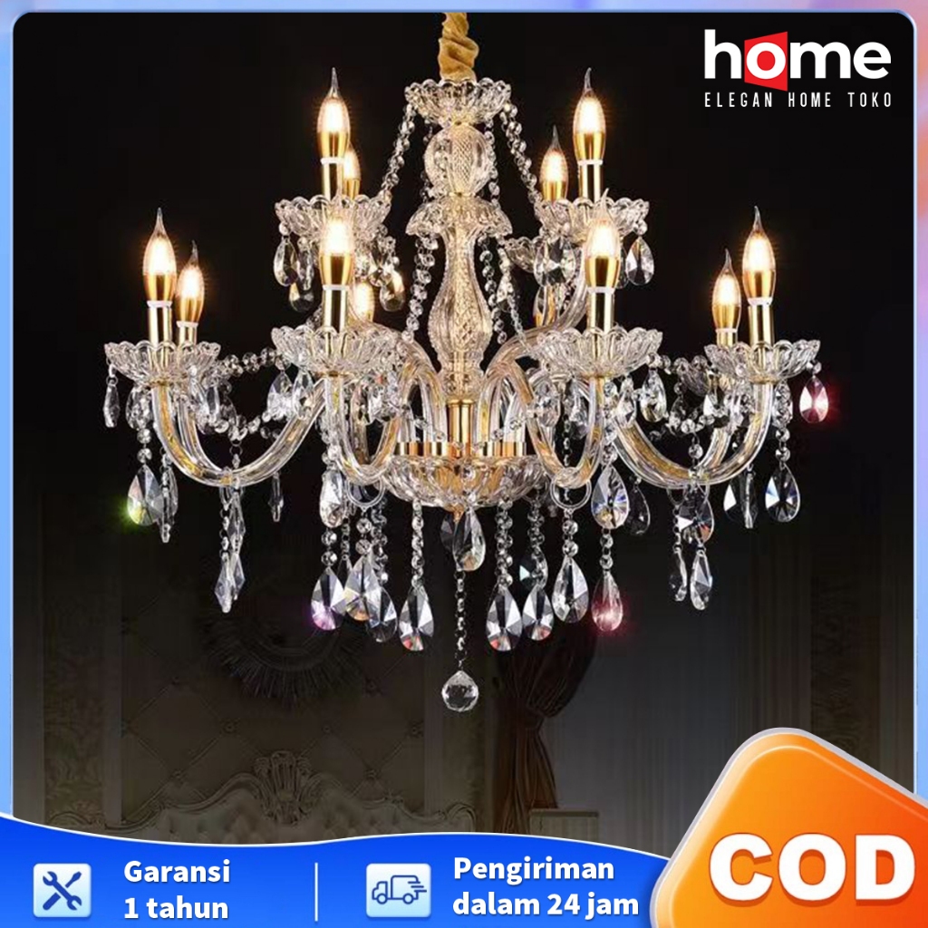 Promo [Ready stock] Lampu Gantung Kristal Akrilik Isi 12 Bohlam Termasuk