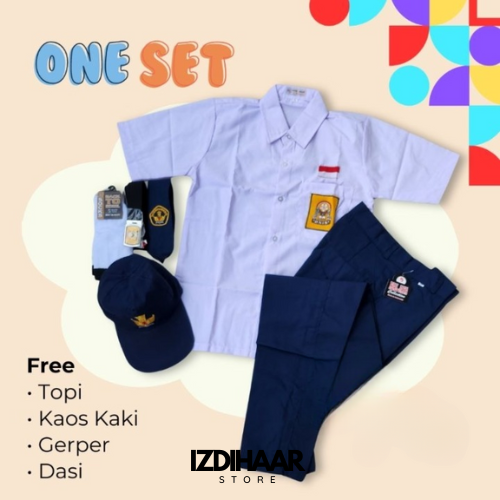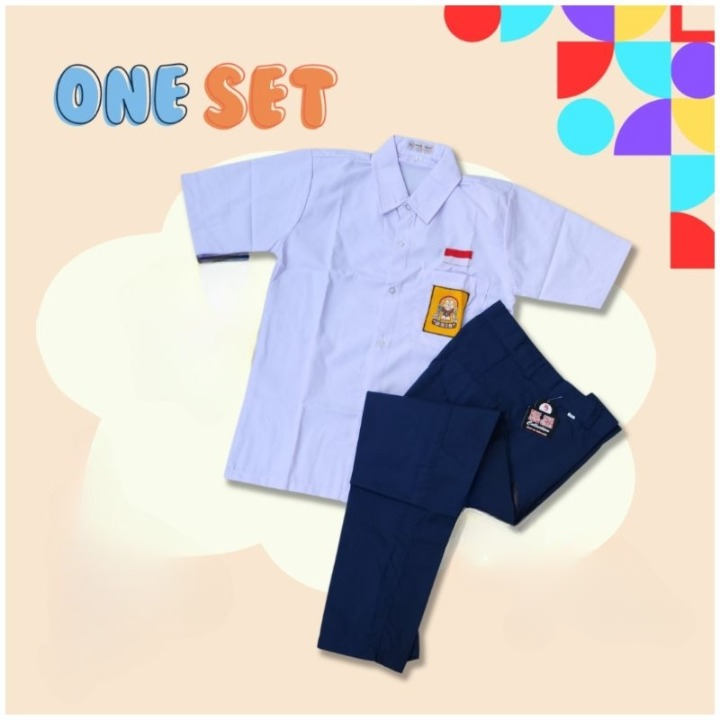 Setelan Super Lengkap Seragam Sekolah SMP LAKI Baju Pendek Celana Panjang Cowo