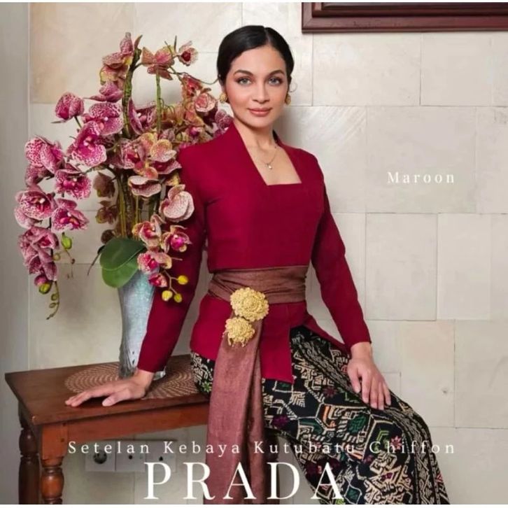 setelan kebaya bali chiffon prada set kebaya kutubaru bali lengan panjang kebaya polos kebaya kutu baru