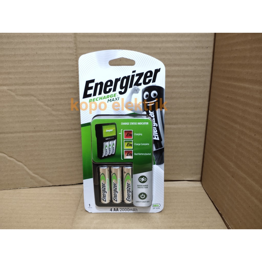 Charger Energizer MAXI AA / AAA Cas Baterai + 4pcs AA 2000Mah RECHARGE ORIGINAL 2000 mah Ready Stock