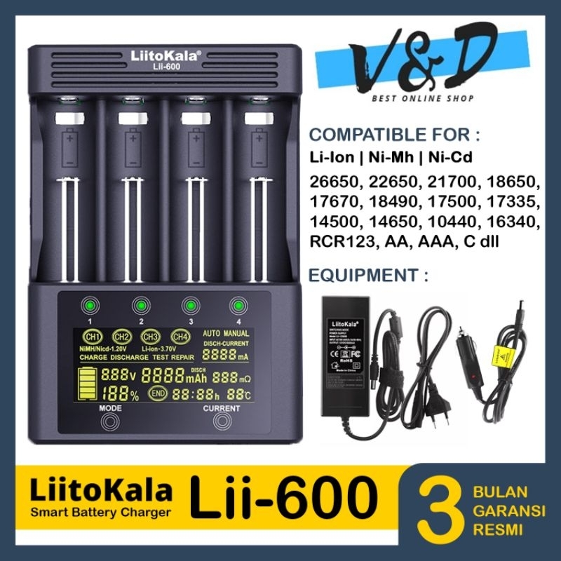 Charger Baterai LiitoKala Lii 600 Original Fullset Ready Stock