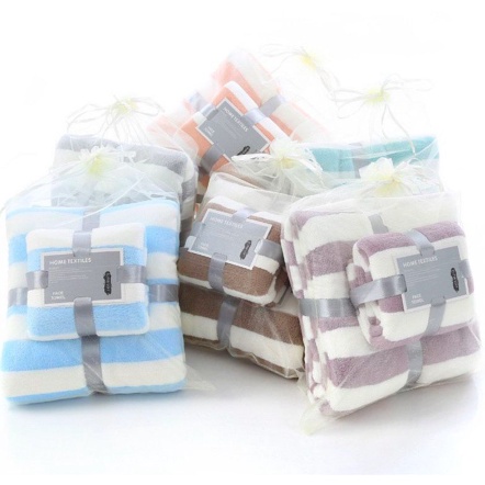 Paket Handuk KOREA Set 2in1 Handuk Mandi Dan Wajah Tebal microfiber Towel Handuk ZIGZAG Salur CHOCHO88