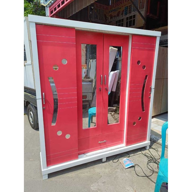 LEMARI SLEDING 4 PINTU bahan multiplek ukuran 180x47x200