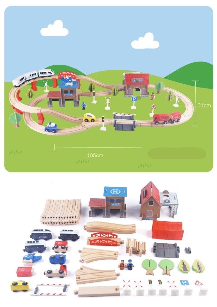 Wooden Train Track Set building 88 pcs mainan kereta api kayu anak