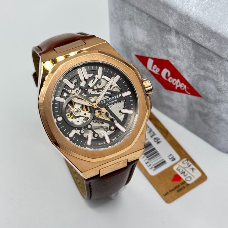 LEE COOPER LC07978.454 Jam Tangan Pria Analog Automatic Lume Kulit 43mm Original
