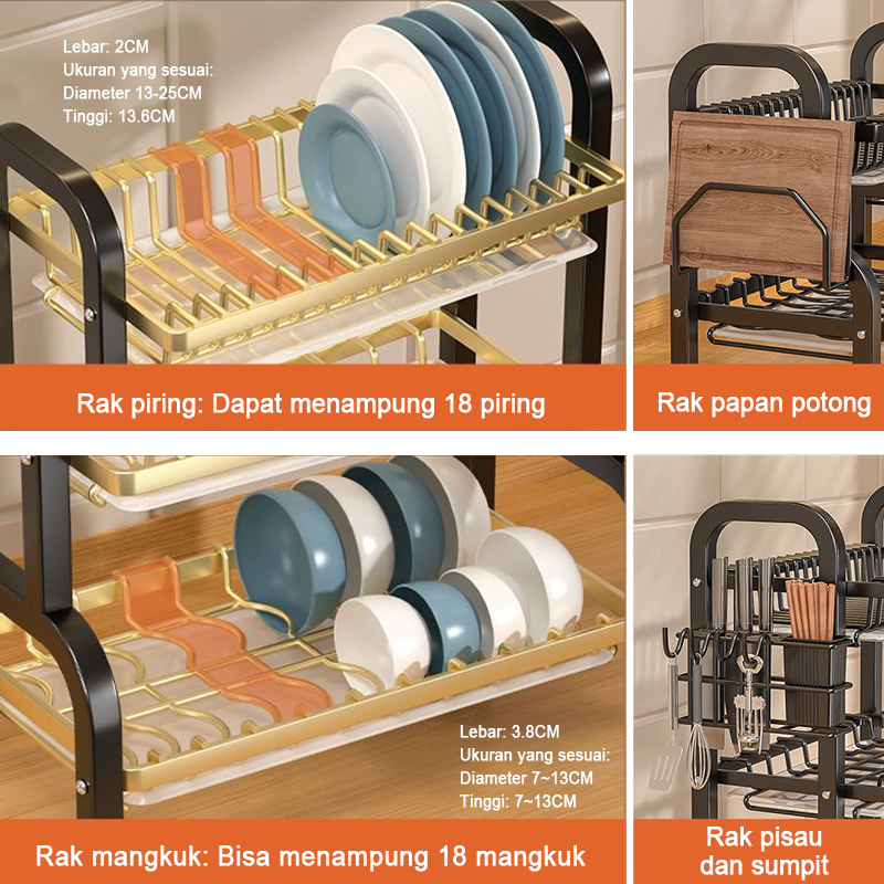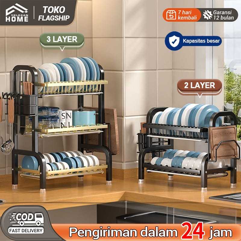 PROMO EH Rak Piring Stainless Rak Cuci Piring Rak Piring Wastafel Dapur Kuat