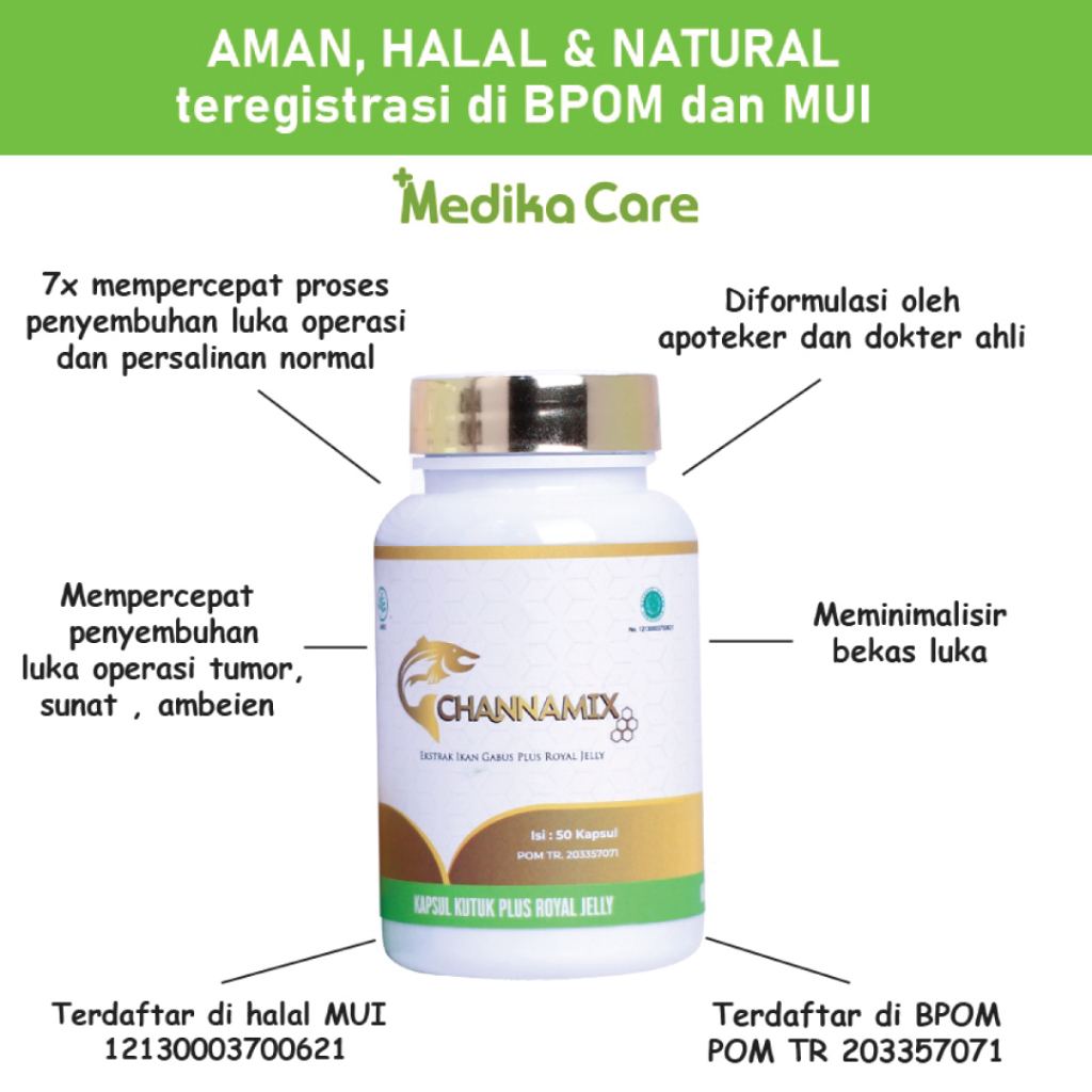 Obat Herbal CHANNAMIX Kapsul Ikan Kutuk Luka 50 Kapsul Operasi BPOM