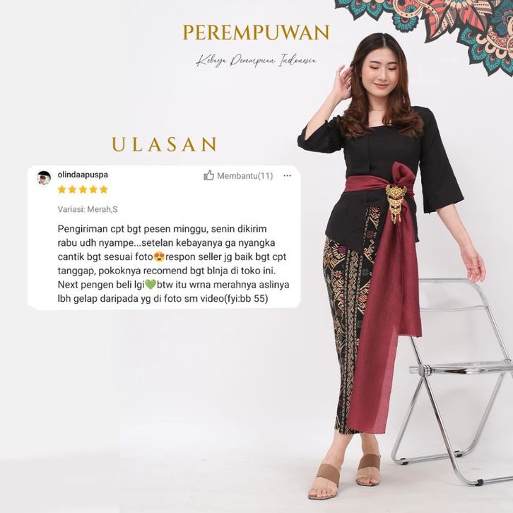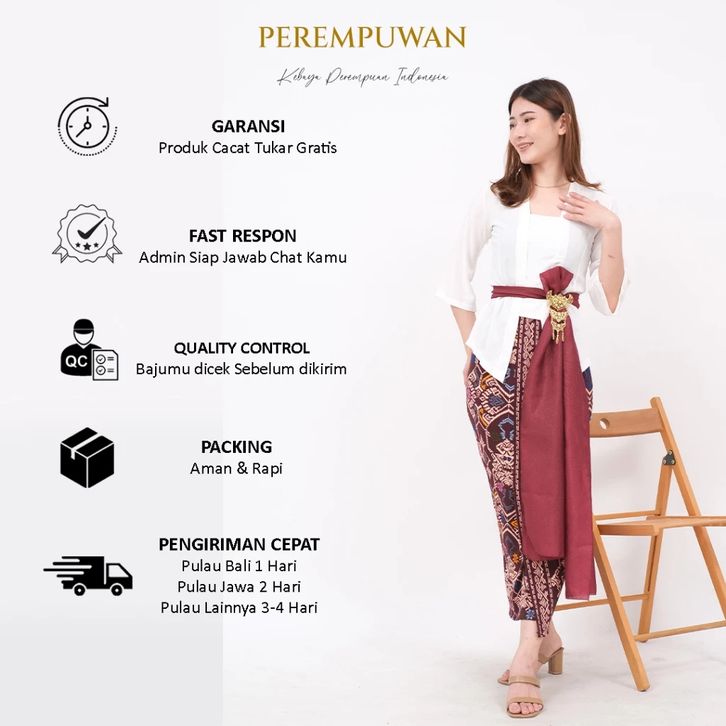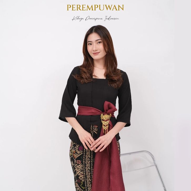 samaya kebaya bali set kutu baru kutubaru hitam putih lengan lonceng 3/4 kain katun linen untuk seragam wisuda kondangan