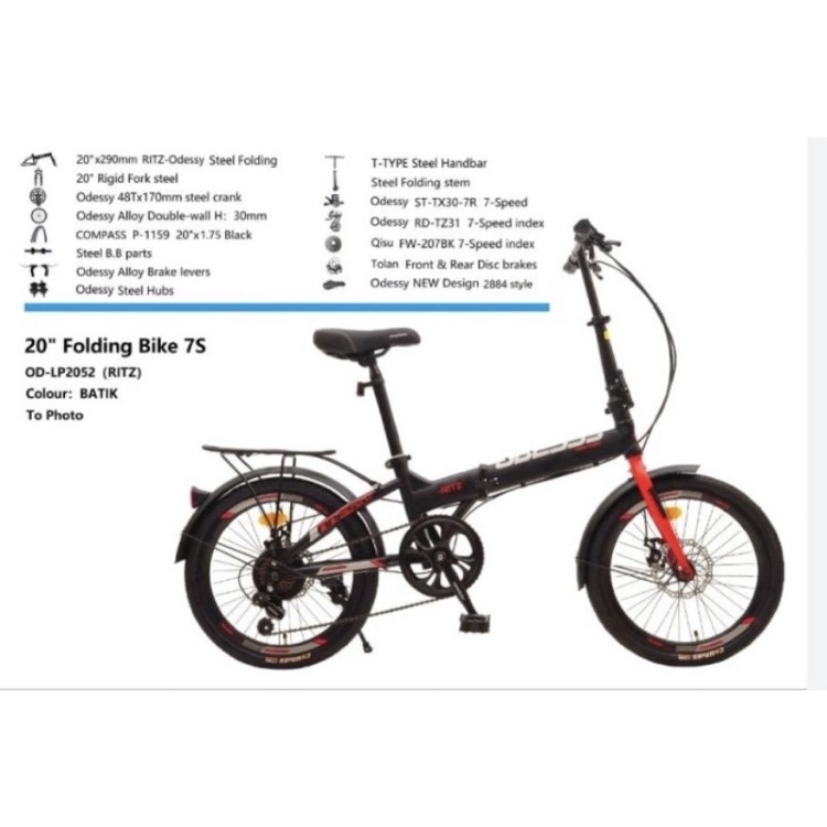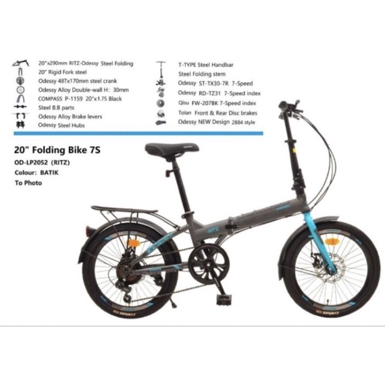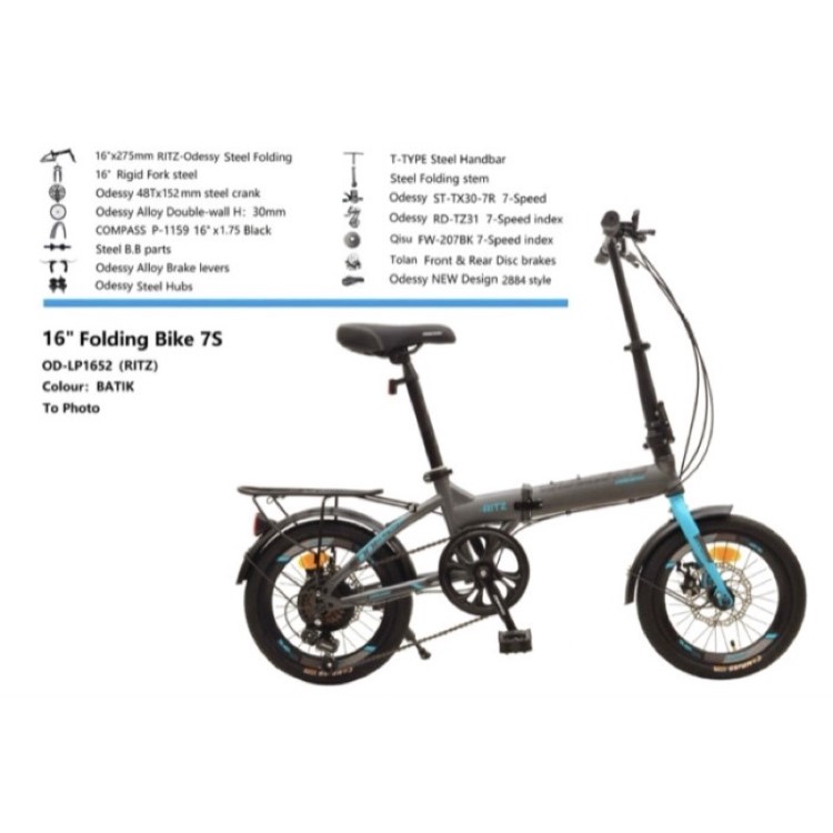 Sepeda Lipat 16 20 INCH ODESSY RITZ Rem Cakram Boncengan Folding Bike Sepedah Anak Laki Laki Perempuan
