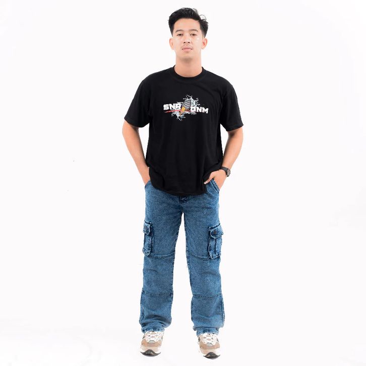 Sensorline Celana Cargo Pria Gombrong Unisex Cargo Jeans Stretch Loose Reguler Fit Panjang